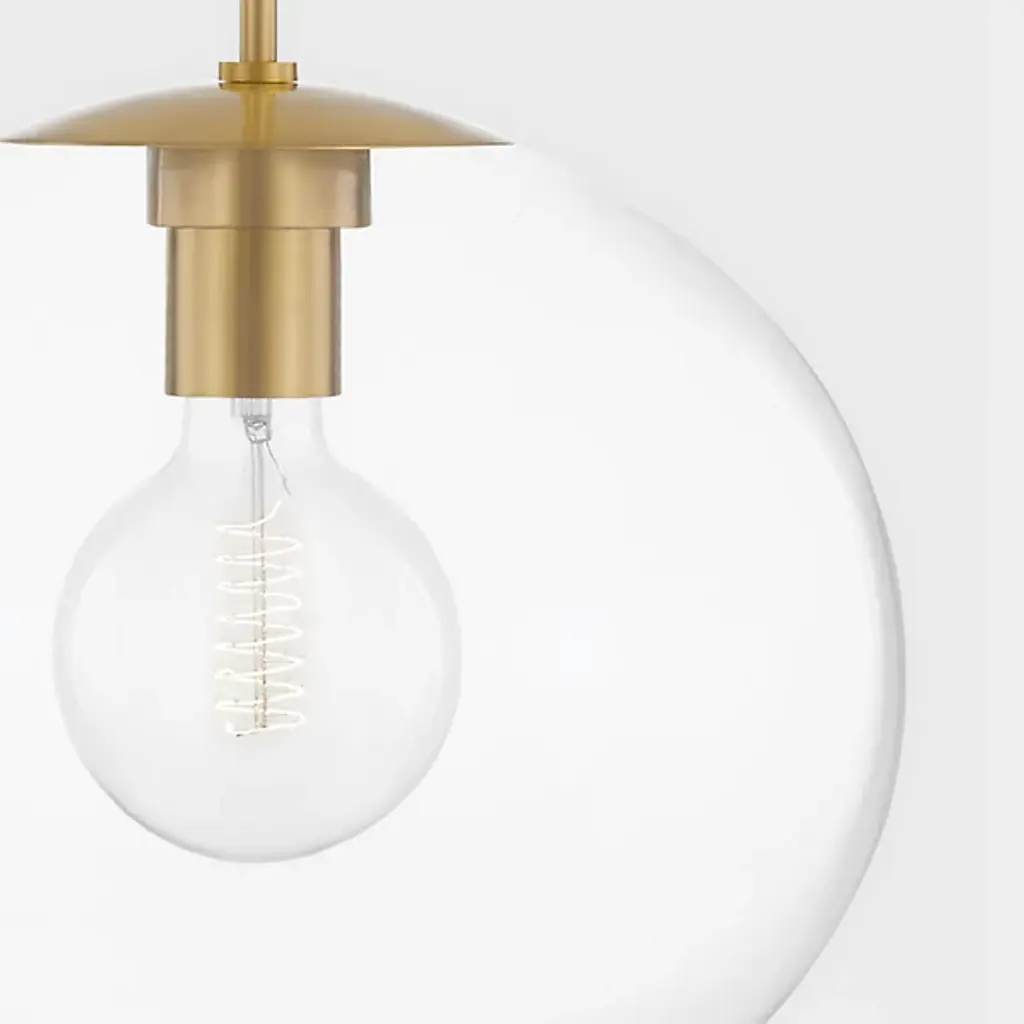 Enhance your inside living spaces with the marvelous Margot XL Pendant from Mitzi. This striking fixture starts with a small cable threaded through a slender downrod, supporting a downward-facing single socket set inside a clear, round shade with an opening at its base. The clear glass surface mellows direct glare from the sides, while an open base allows a stately splash of task light while contrasting well with the smooth metal fittings.