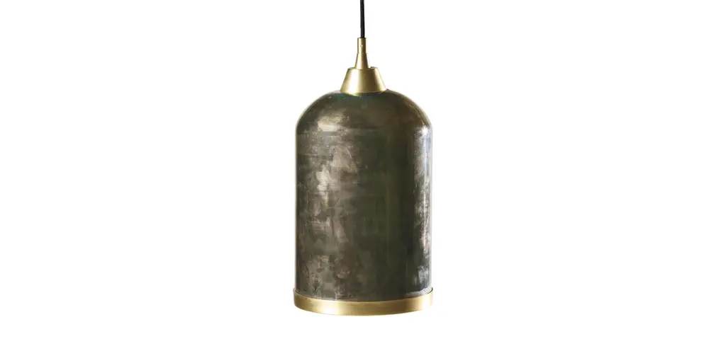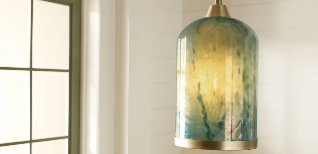 Our Marian blown-glass pendant light's one-of-a-kind coloring comes from a unique craftsmanship process. Artisans roll molten glass in mineral powder; at an incredibly high temperature, the powder's reaction with air creates fog-like patterns along the glass surface. The artisans then blow the still-hot glass into a mold to form it, smoothing the piece to finish the shape. Once the glass is cooled, the piece takes on a dark, smoky appearance when the light is off; when it's switched on, it glows a beautiful shade of blue-green. Each handmade Marian is one of a kind.