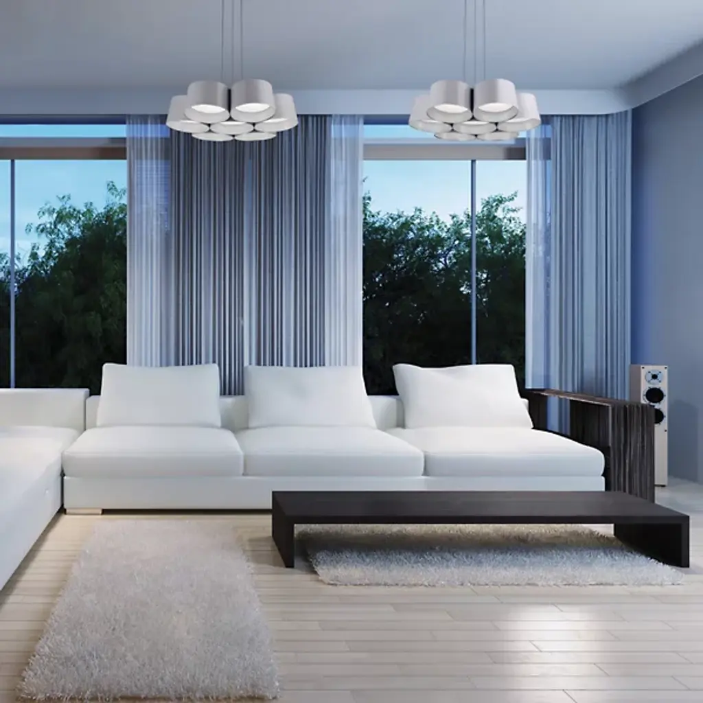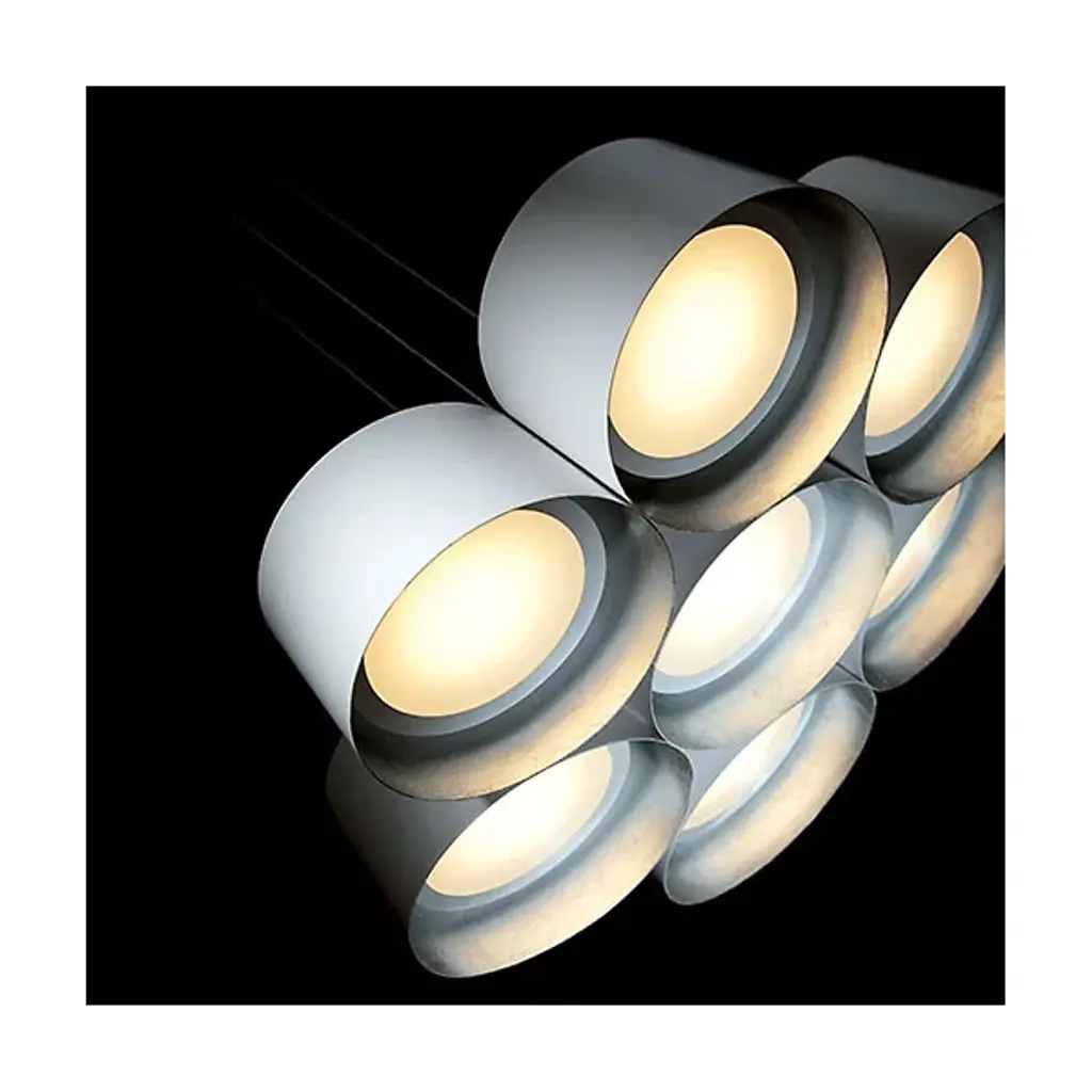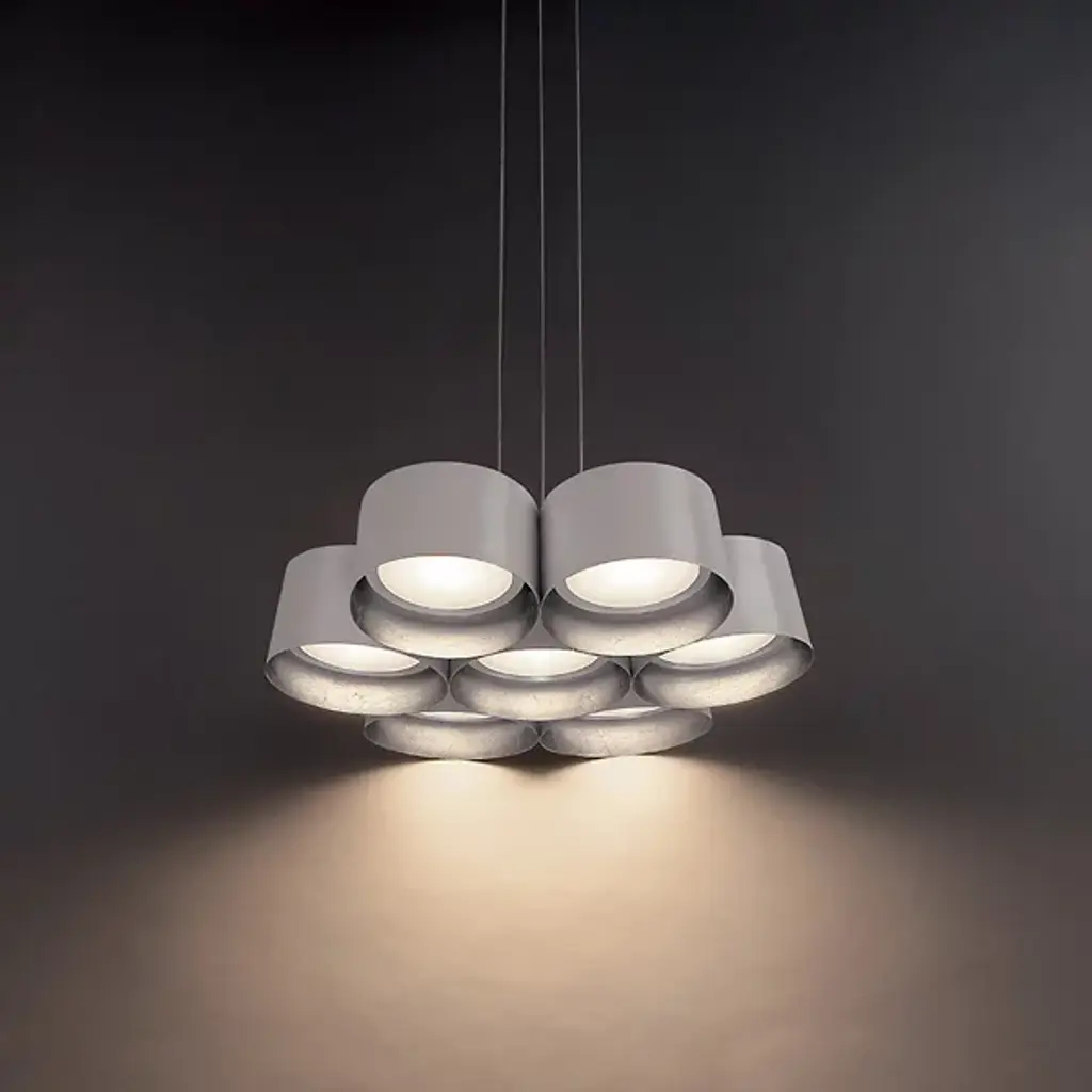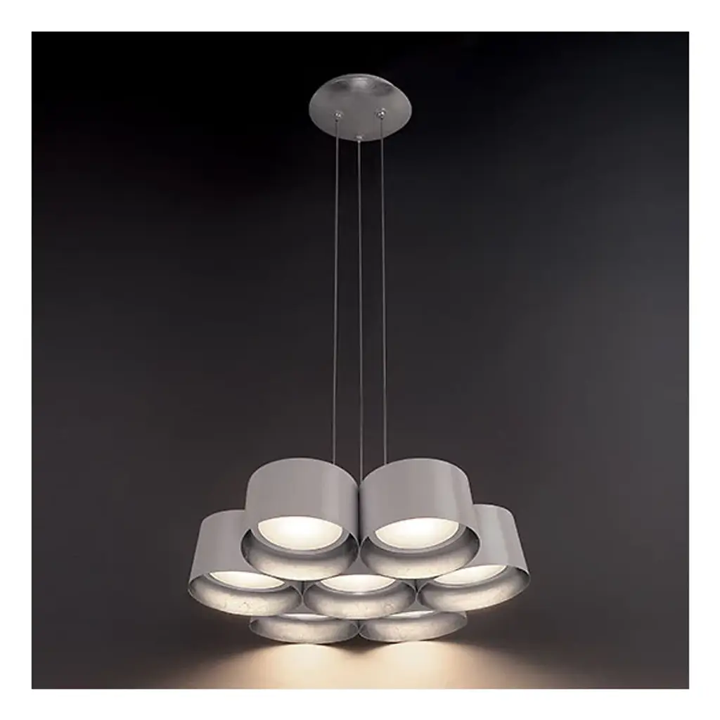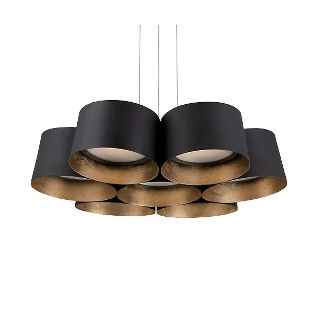 Percussive perfection. The Modern Forms Marimba LED Pendant clusters seven steel drum shades into one fascinating fixture. Each shade's interior boasts a hand-leafed finish and a twist-lock etched glass diffuser for flattering illumination. Energy-efficient LEDs are a straightforward new design standard, but Marimba's unusual style marches to the beat of a different drum.