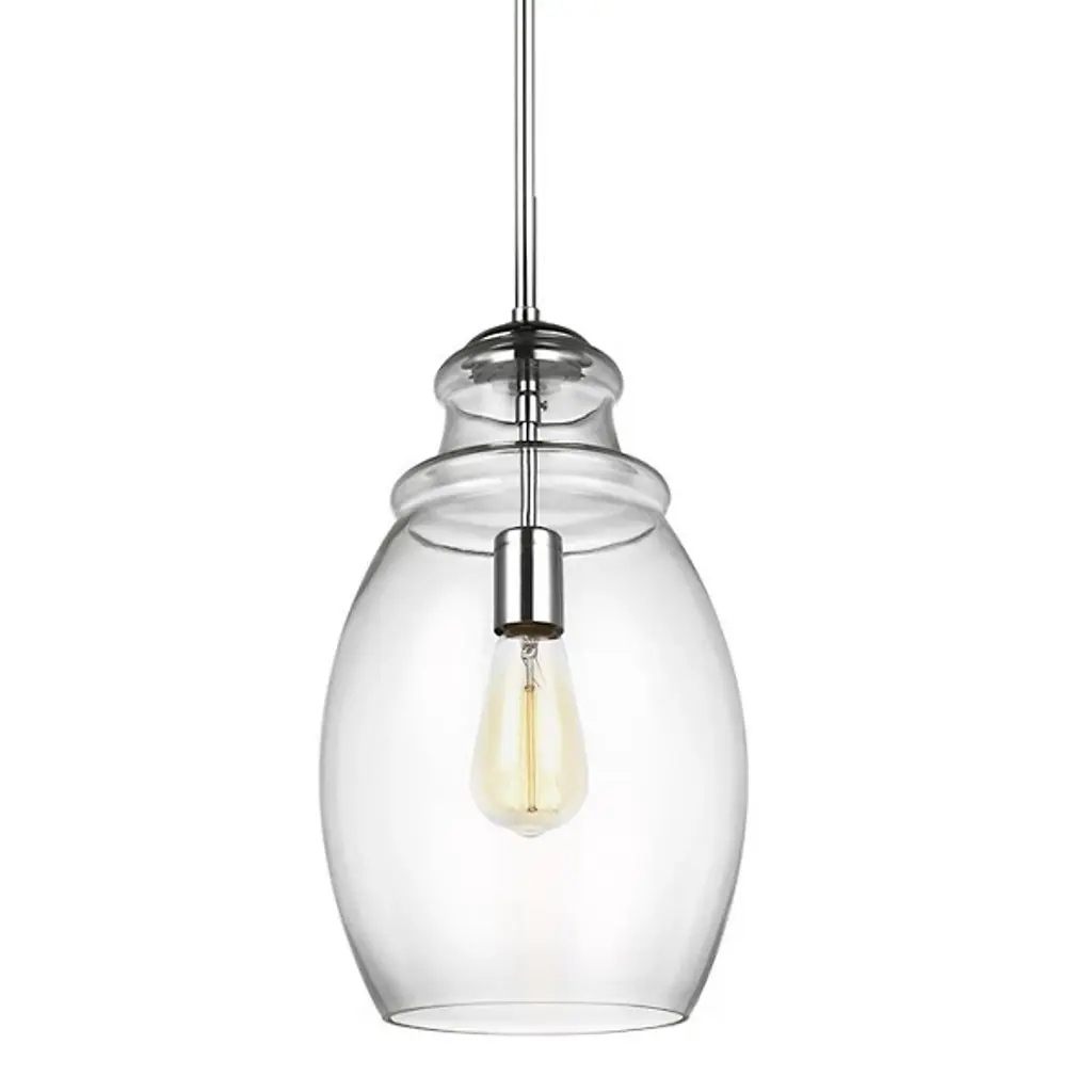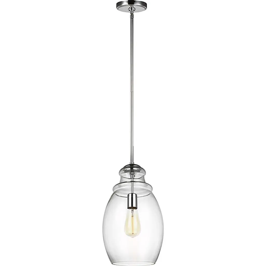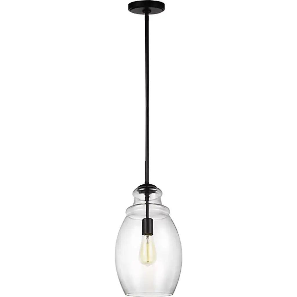 A drop of sophistication. The Marino Pendant from Generation Lighting, formerly known as Sea Gull Lighting, is an elegant image brought to life with artisanal glass. Streaming down with a slim metal downrod, the pendant’s suspension makes it easy to arrange a few as a series or fit one in a tight space. The precise geometry of the metal creates an intriguing contrast with the flowing silhouette of the glass shade. Accented by soft, rippling contours on top, the shade rounds out to create a spacious volume that enhances the light. When turned on, the singular bulb inside touches up the glass with brief highlights as it produces an intimate ambient glow.