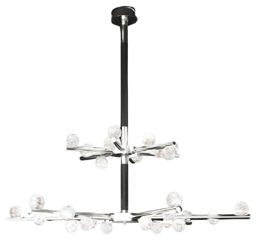 Like a gorgeously beaded garment, the Marni collection add luxury and interest to any design. Meticulously cut spherical shades create glittering beams of illumination throughout the design. Available in Polished Nickel and Natural Brass accompaniments.