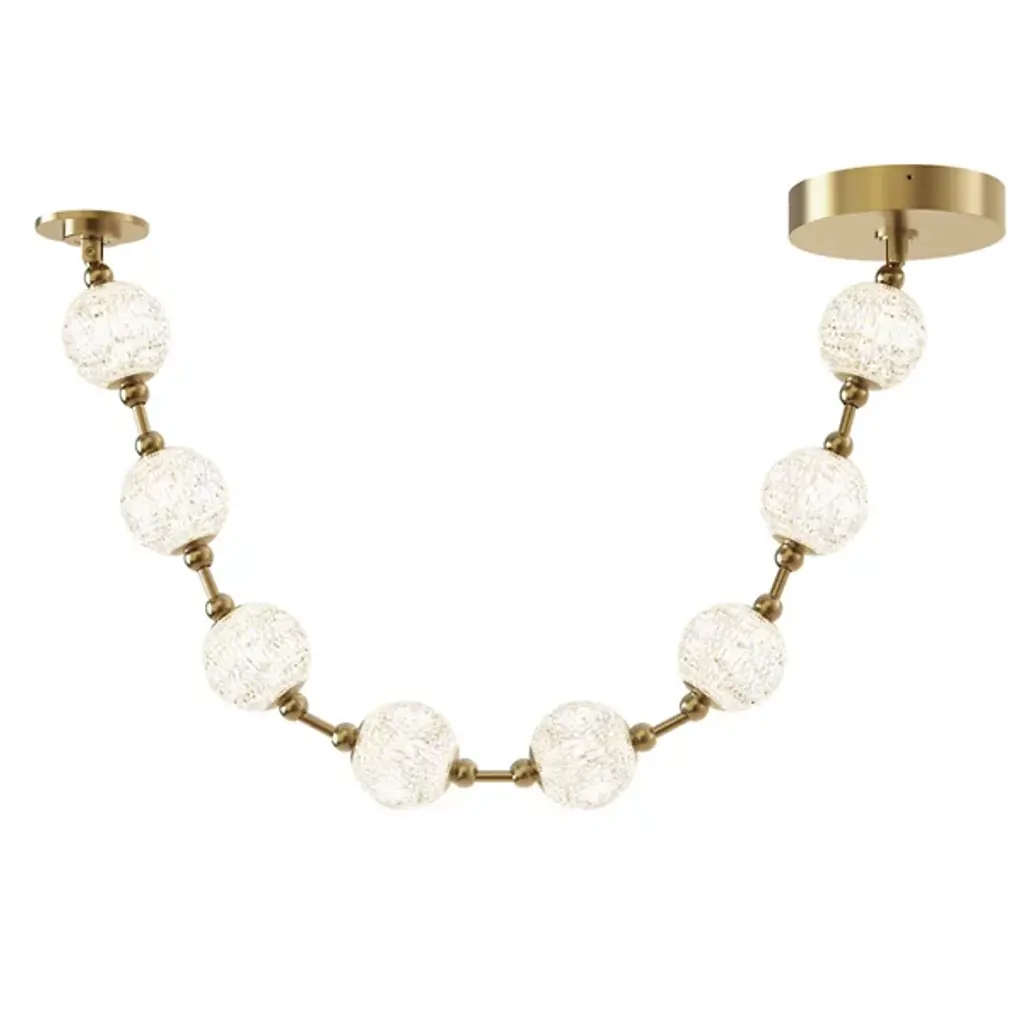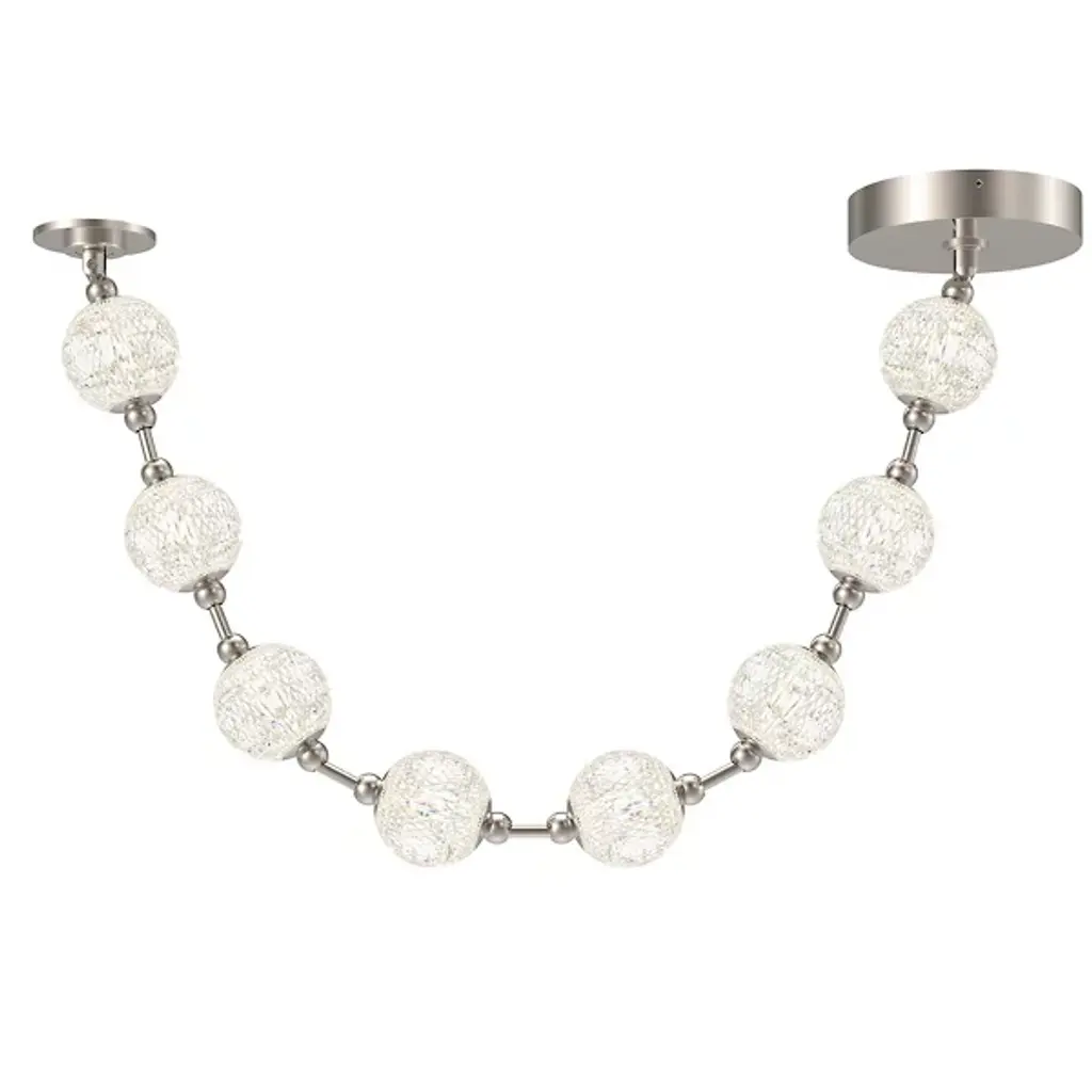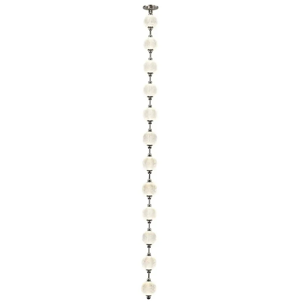 Pearlescent brilliance beams from the Marni LED Pendant from Alora Lighting. A decadent design by NYC Studio, its meticulously cut acrylic shades are linked by metal to resemble luminous jewelry, installed horizontally or vertically. The delicate pendant refracts illumination through its beaded strand-like silhouette, adding glamorous interest. Like light seen through a gorgeously beaded string of jewelry, the pendant scatters dazzling rays. Contemporary materials shape retro allure, making this shimmering pendant shine with an unforgettable elegance.