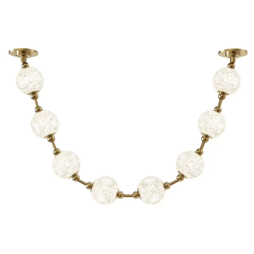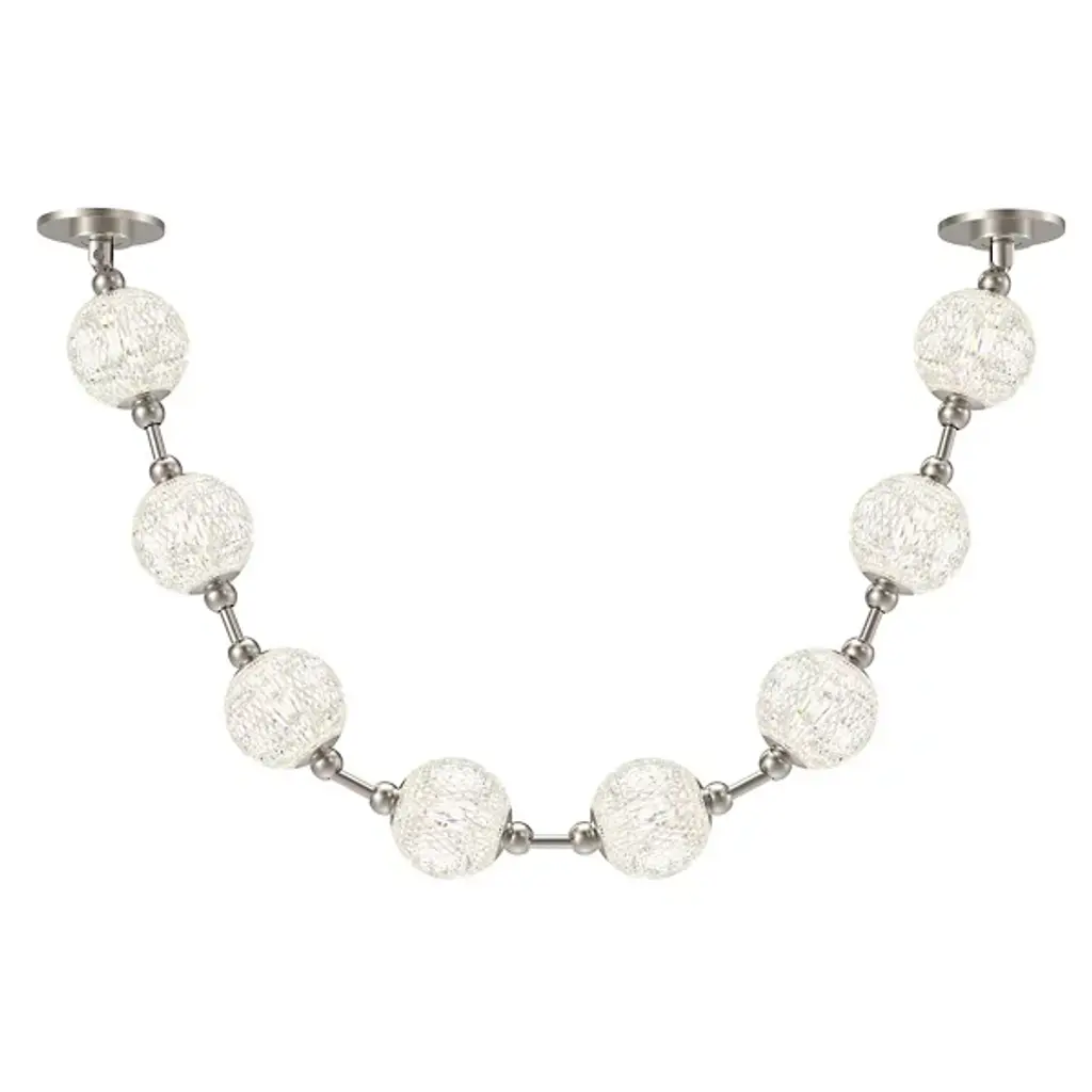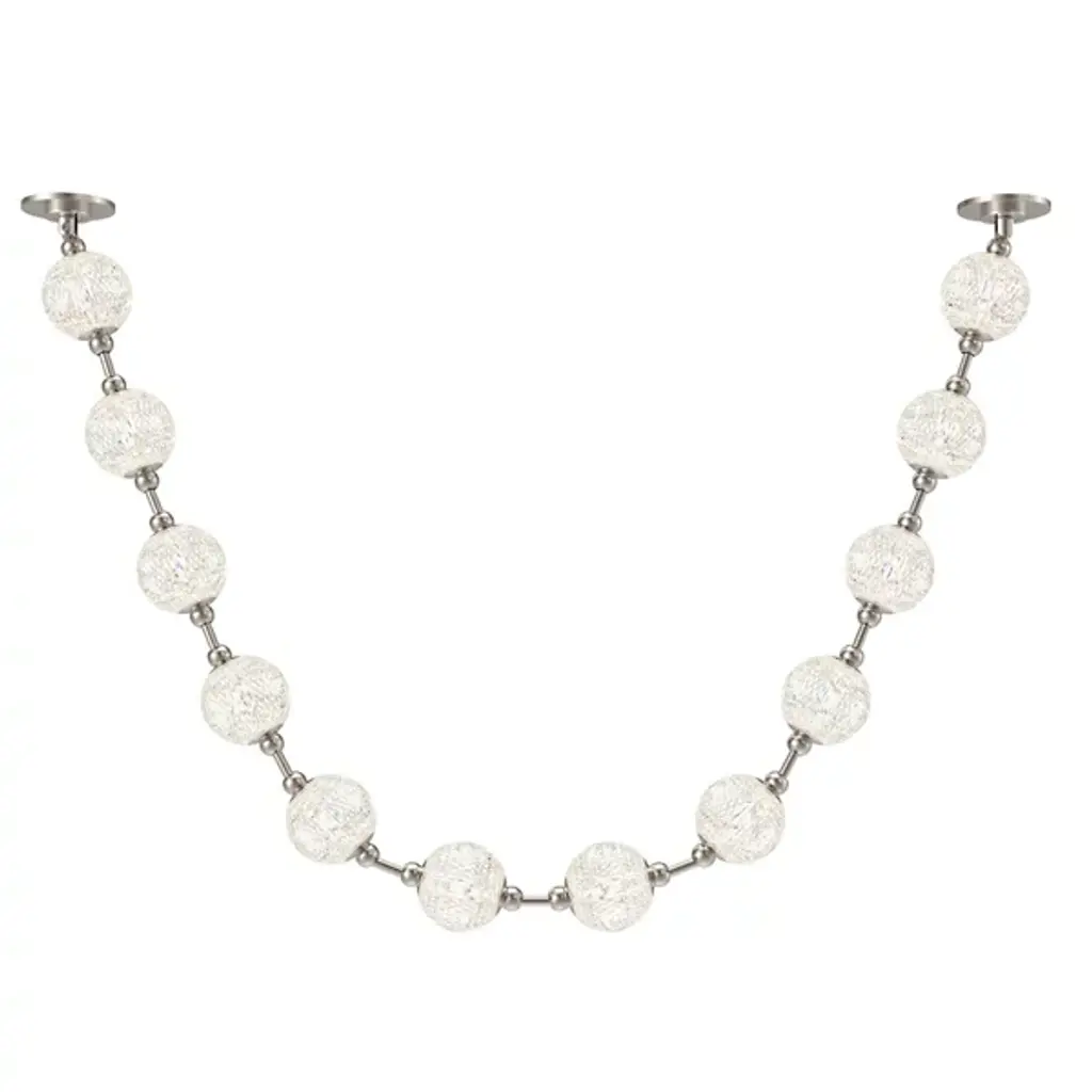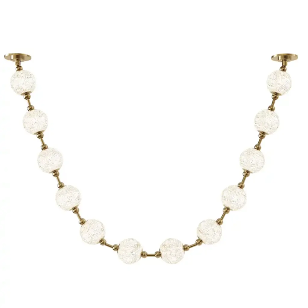 Pearlescent brilliance beams from the Marni LED Pendant from Alora Lighting. A decadent design by NYC Studio, its meticulously cut acrylic shades are linked by metal to resemble luminous jewelry, installed horizontally or vertically. The delicate pendant refracts illumination through its beaded strand-like silhouette, adding glamorous interest. Like light seen through a gorgeously beaded string of jewelry, the pendant scatters dazzling rays. Contemporary materials shape retro allure, making this shimmering pendant shine with an unforgettable elegance.