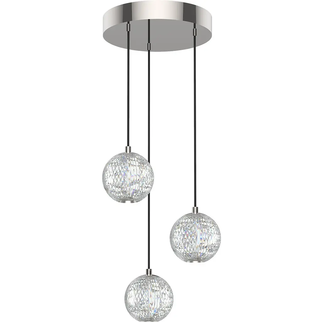 Like a gorgeously beaded garment, the Marni collection add luxury and interest to any design. Meticulously cut spherical shades create glittering beams of illumination throughout the design. Available in Polished Nickel and Natural Brass accompaniments.