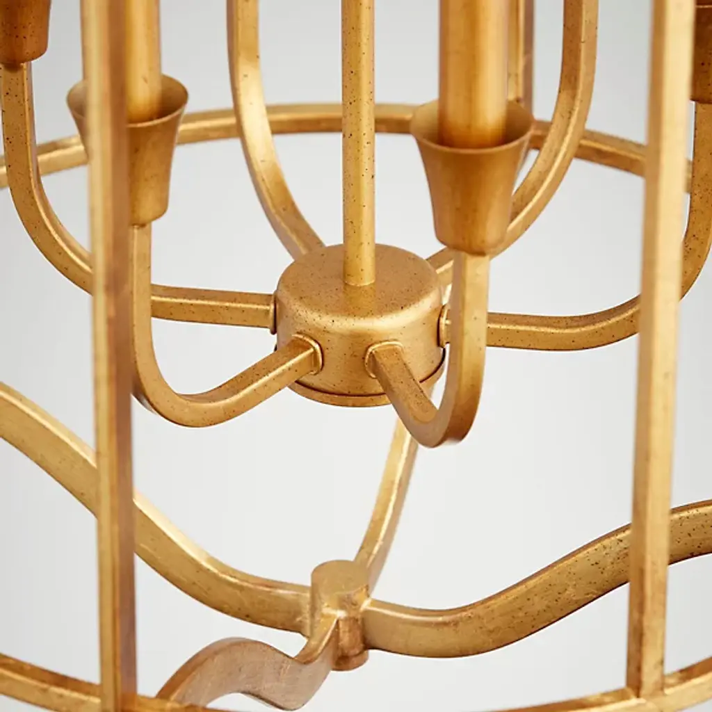 A stylish piece with an open silhouette, the Marquee Pendant from Quorum International shapes the décor of the home with a clean demonstration of light. Hanging from the ceiling with a long and thin downrod and a chainlink, this piece features a cylindrical-shaped body formed from a series of thin metal lines. A set of four candelabra-style bulbs rest within the body, sending out a bright and even layer of light into the room.