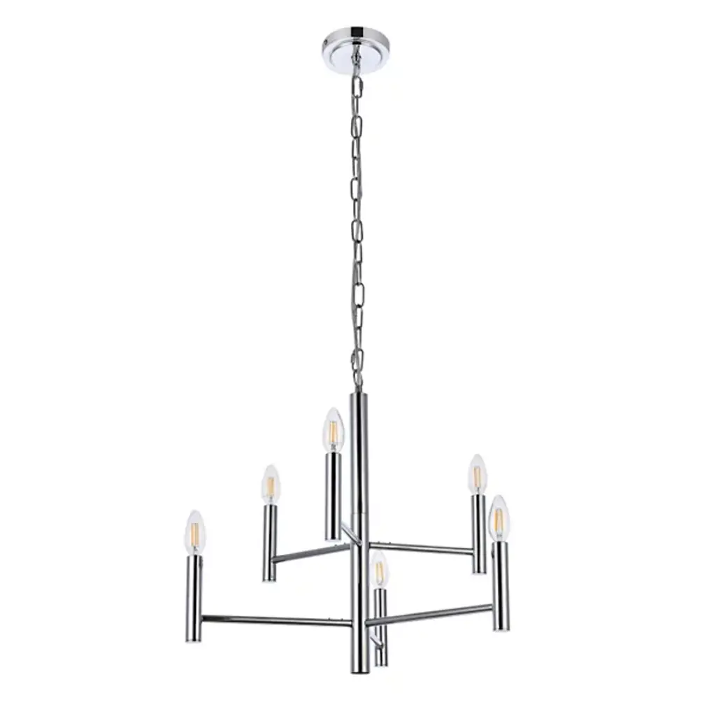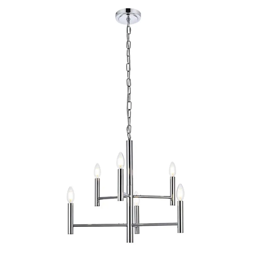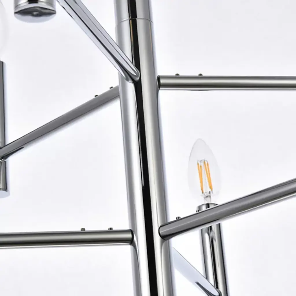 The Marta Pendant from Alder & Ore adds an expressive, versatile appeal to inside spaces. Made of metal and damp-listed for versatile installation, this transitional fixture gracefully suspends a fine chain length from a stepped circular canopy, creating a captivating contrast effect with the clean-surfaced metal. The pendant design showcases open, damp-listed candelabra lamps supported by horizontal bars of varying lengths, adding an elegant touch to the overall aesthetic and juxtaposing transitional complexity with contemporary simplicity.