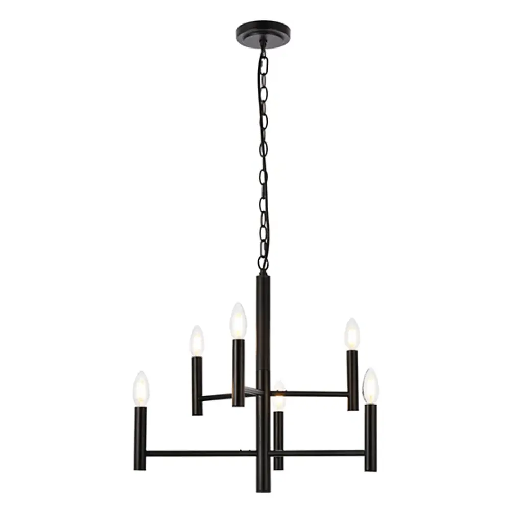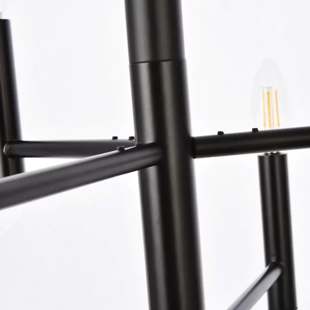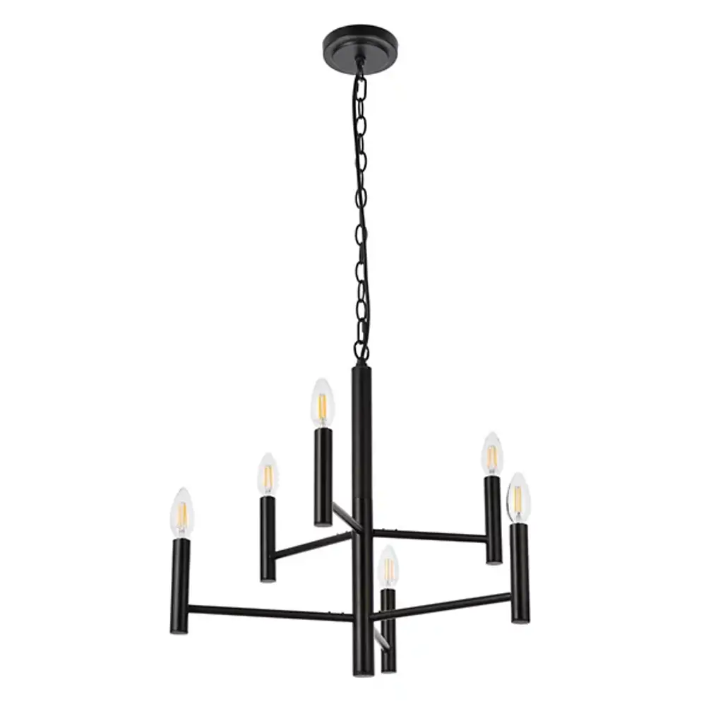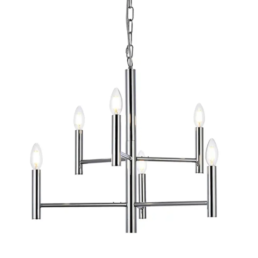The Marta Pendant from Alder & Ore adds an expressive, versatile appeal to inside spaces. Made of metal and damp-listed for versatile installation, this transitional fixture gracefully suspends a fine chain length from a stepped circular canopy, creating a captivating contrast effect with the clean-surfaced metal. The pendant design showcases open, damp-listed candelabra lamps supported by horizontal bars of varying lengths, adding an elegant touch to the overall aesthetic and juxtaposing transitional complexity with contemporary simplicity.