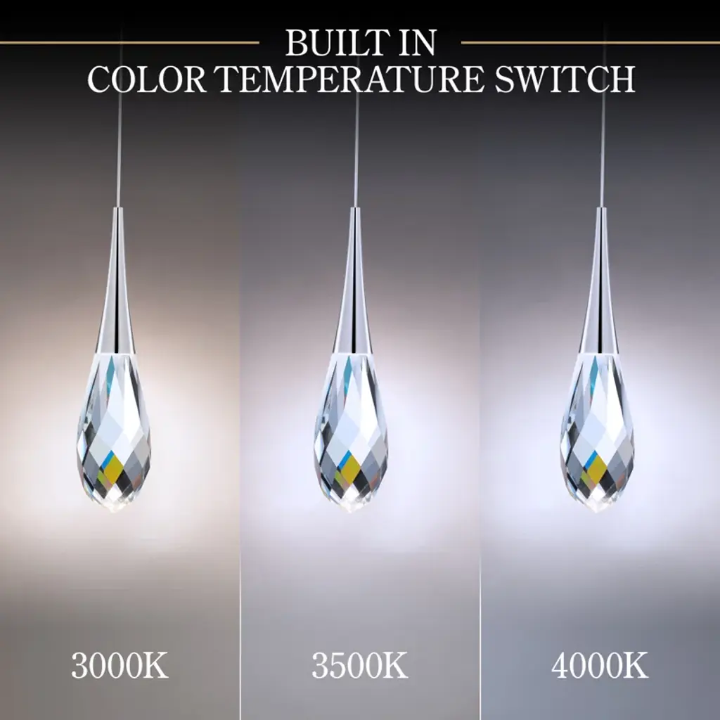 Multi Lights: A shower of jewels. Suspended in mid-air, Schonbek optic or optic haze crystal elements composed of natural quartz gemstone illuminate at varying heights to entice. Cascading from above and perfectly designed for over breakfast tables or nightstands in a bedroom to make a powerful but elegant statement. Mini Pendant: Suspended in mid-air, a jewel of Schonbek optic or optic haze crystal composed of natural quartz gemstone illuminates to entice. The chiseled metal fitting is congruent with the faceted crystal to confer elegance in design continuity.