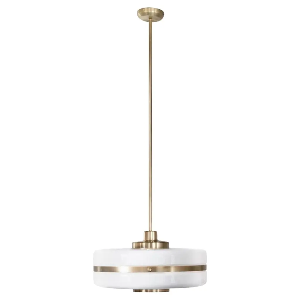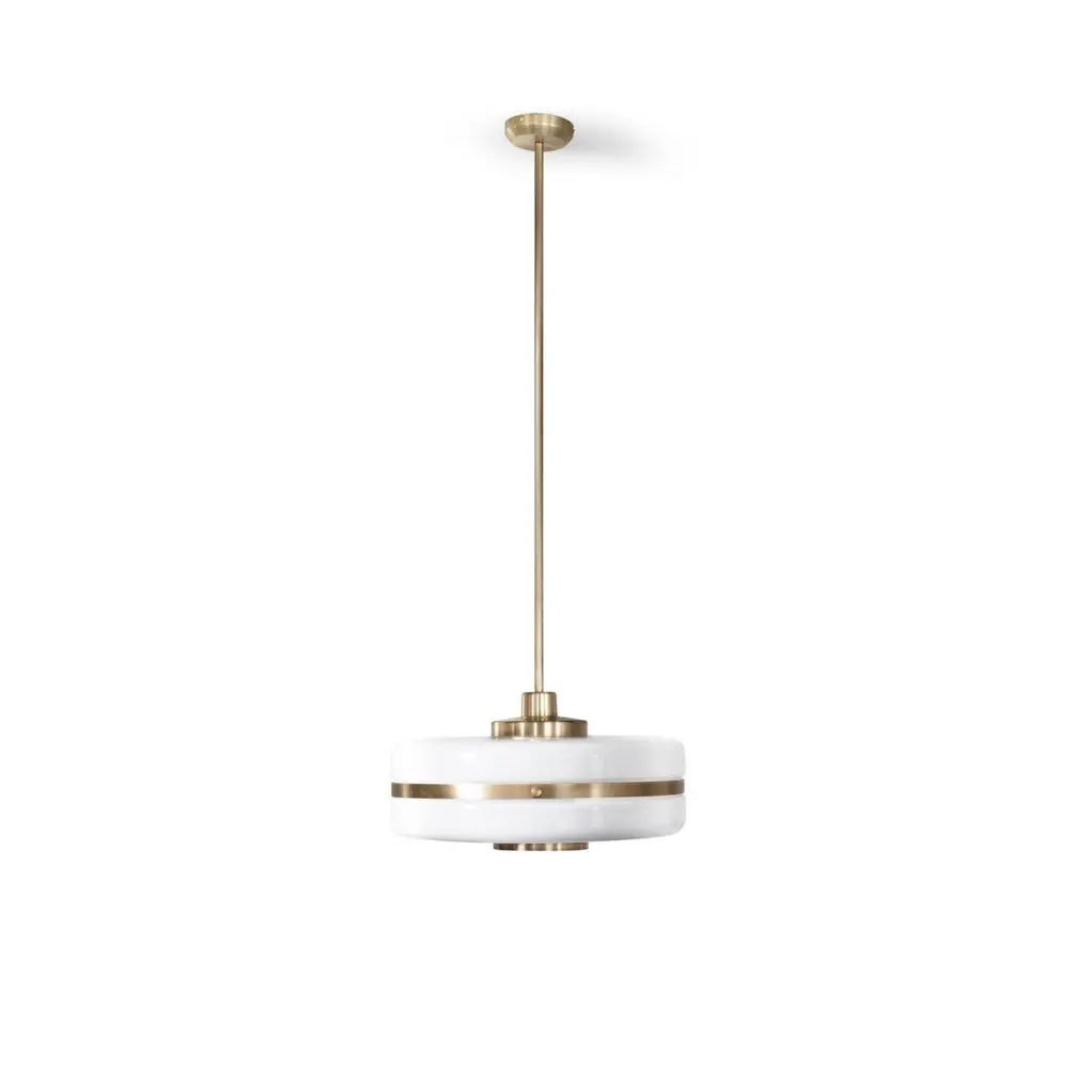 Masina pendant light by Bert FrankDimensions: 22 (only lamp) x 40 cmMaterials: Brass, glassWhen Adam Yeats and Robbie Llewellyn founded Bert Frank in 2013 it was a meeting of minds and the start of a collaborative creative partnership with engineering at the core.Both men share a love of design and deep respect for the heritage of British engineering. Both wanted to create high-end products that would Stand the test of time and fly in the face of throwaway consumerism. The partnership has resulted in award-winning lighting and accessories that fuse the integrity of the small-scale workshop with timeless aesthetics reimagined for today.The two men work closely together from concept to end product. Robbie’s imagination and occasional flights of fancy are informed by Adam’s understanding of engineering principles and fabrication techniques. Equally, Adam's designs are often the starting point for a collection. In that sense Bert Frank is a true creative collaboration. As a result, every designed is honed to perfection, every detail carefully considered.
