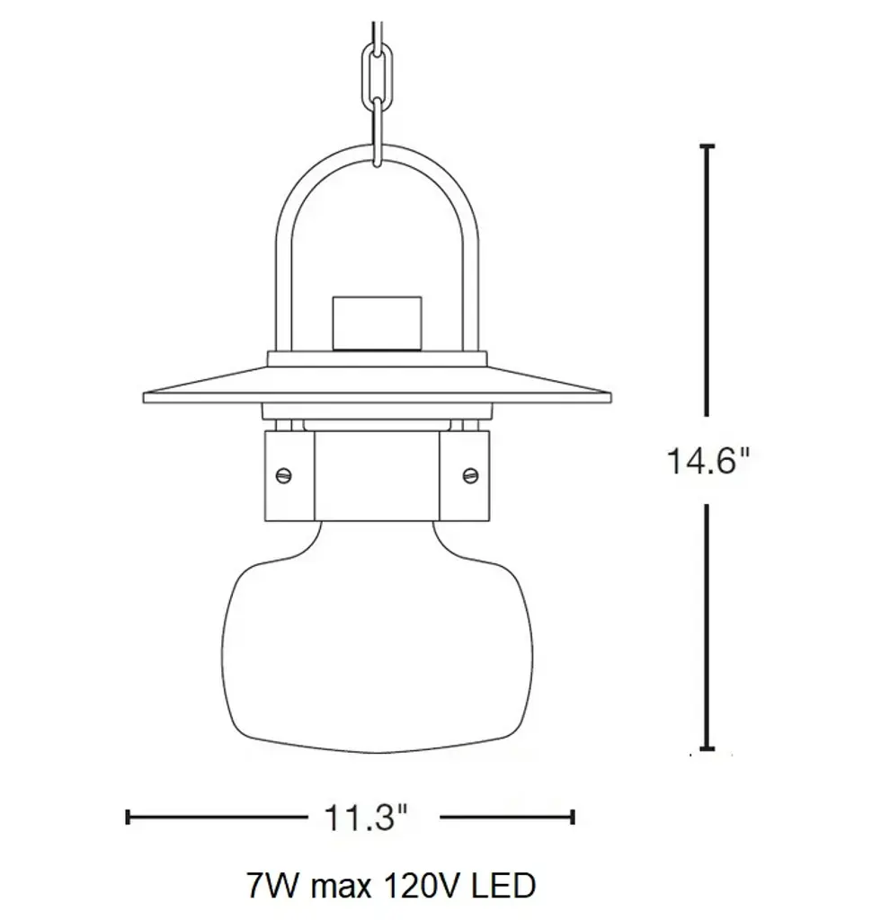 Hubbardton Forge's version of a traditional lantern gives a subtle nod to steampunk aesthetics. Showing a mix of high-end craftsmanship, from the thick blown-glass bell to the metallic curve of the lantern handle, to the details of the riveted collar – this fixture has it all. Features