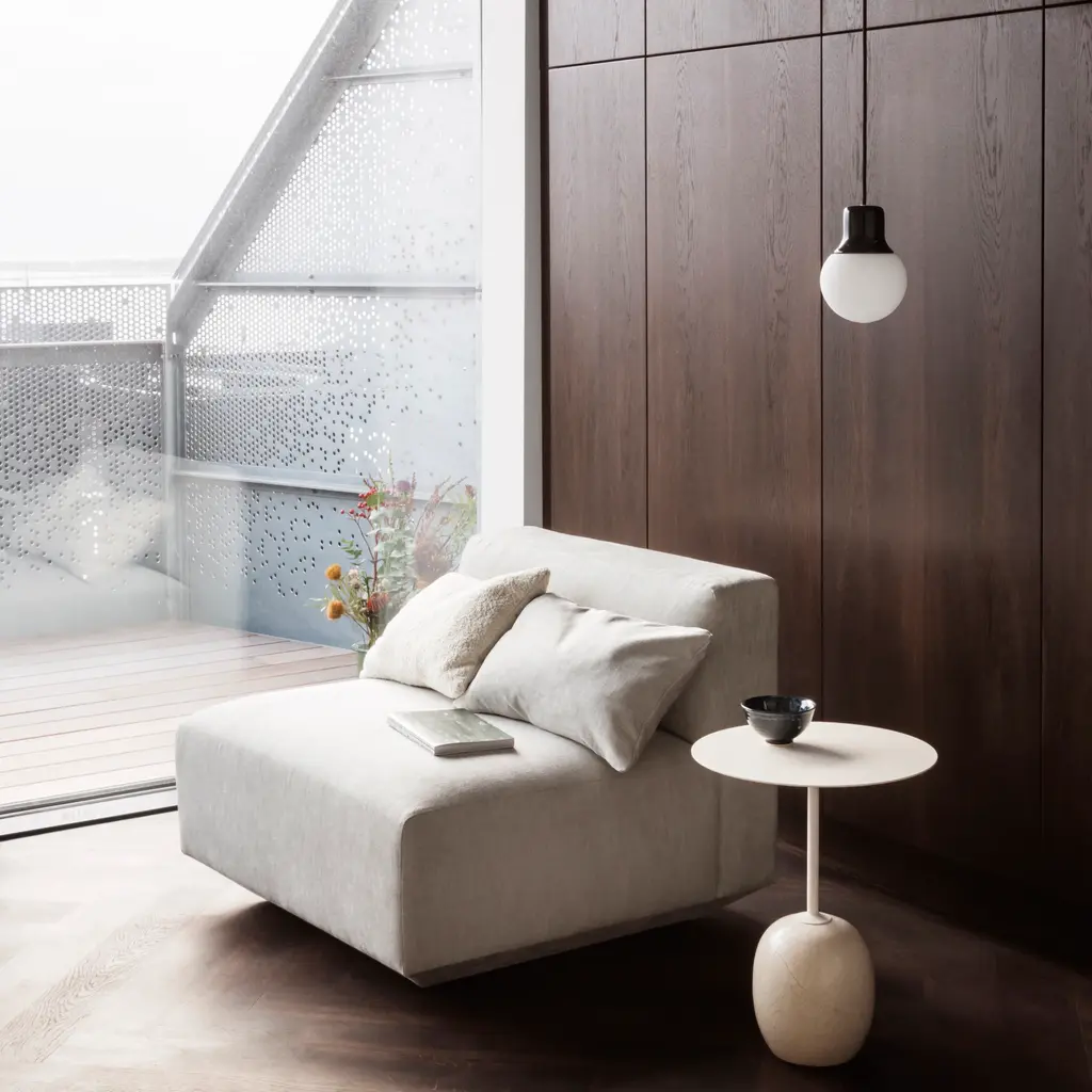 Shades of the Left Bank, Tribeca and Gràcia! Norm.Architects designers Kasper Rønn and Jonas Bjerre-Poulsen conjured the Mass Light NA5 from their fascination over the street lamps in Paris, New York and Barcelona. From that journeying, they arrived at this indoor fixture that re-imagines a streetlight's cast iron top in lacquered brass or copper, in tandem with with an opal glass sphere. The bold but highly adaptable shape of the Mass Light NA5 is but another instant classic from Danish design house &Tradition, whose Kornbeck Hansen says, "All of our designers have a unique vision and their designs have the capacity to reach people in their everyday lives."