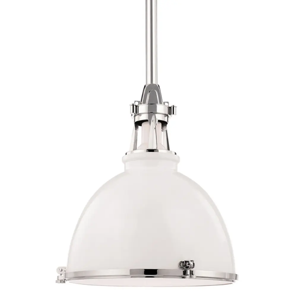 Massena gives designer treatment to industrial lighting. We contrast the metal shade’s smooth dome with the collar’s strong details. Cutout vents cast upward light and reveal a pristine porcelain lamp socket. Massena’s interior is fully finished in white gloss to amplify downlight, while an etched glass diffuser, secured by diamond-knurled thumbscrews, softens shadows and shield eyes from glare.