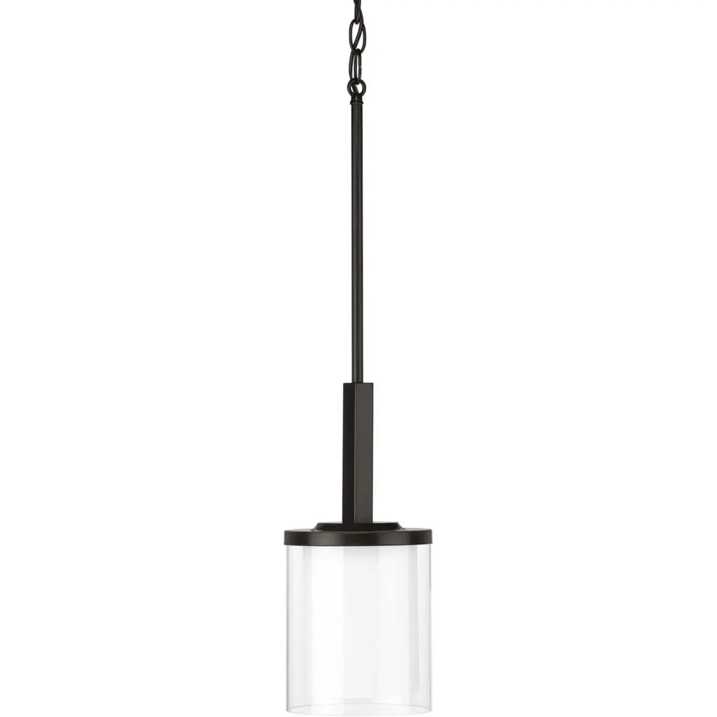 Sleek lines and the union of Antique Bronze and faux wood accents enhance the calming demeanor of the Mast one-light mini-pendant. A fitting choice for shining light onto a countertop or over a dining table or kitchen island in coastal and modern farmhouse interiors.