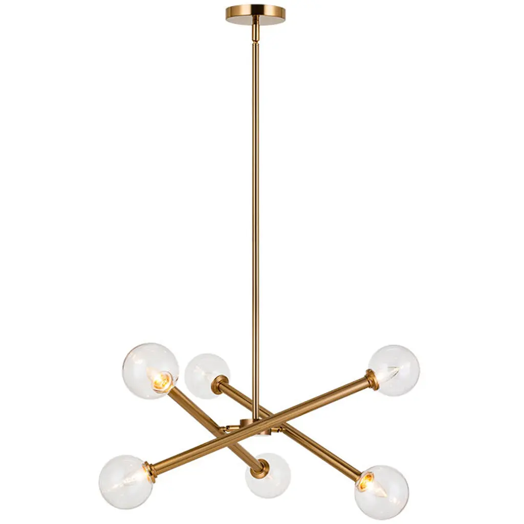 Matchstix 6 Light 25 Inch Aged Gold Brass Pendant Ceiling Light In Aged Gold Brass And Clear