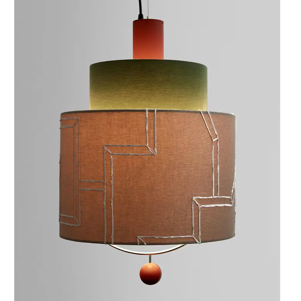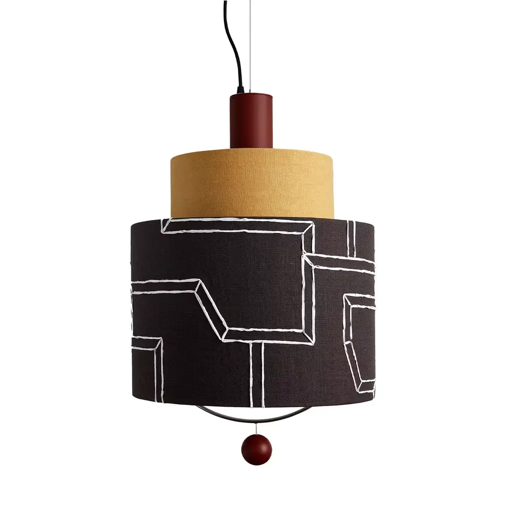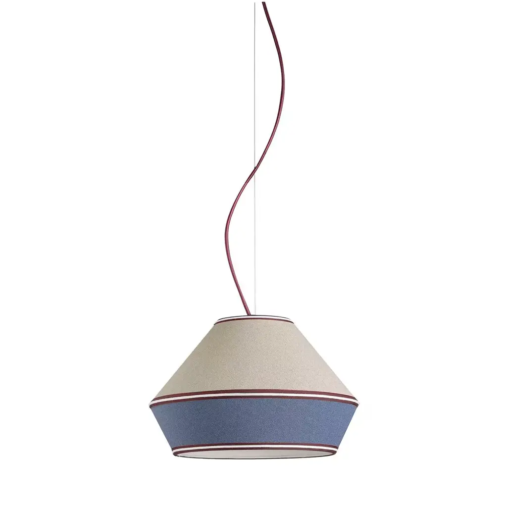 The Materia lamps combine simplicity and retro geometric motifs, crafted from pure European long-staple linen by Dedar, with a 3D-coated cotton ribbon. Upon request, available in single, double, or triple variants, they feature an adjustable height pulley system. With brushed steel and varnished wood components, it offers timeless strength and versatility. Each lamp has a 1x E27 or E26 bulb (not included), and a 3-meter silk-like flex cable. It is compatible with dimmable systems.