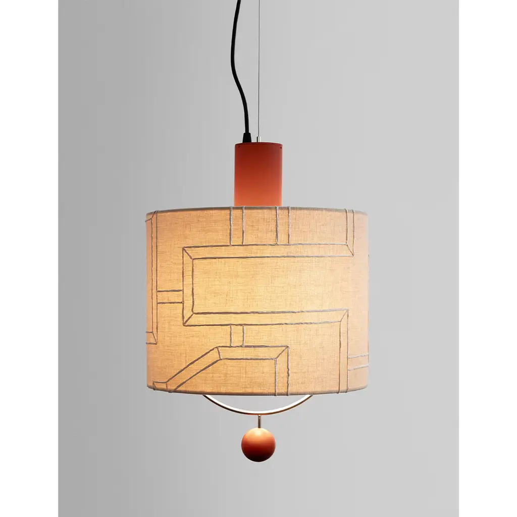 The Materia lamps combine simplicity and retro geometric motifs, crafted from pure European long-staple linen by Dedar, with a 3D-coated cotton ribbon. Upon request, available in single, double, or triple variants, they feature an adjustable height pulley system. With brushed steel and varnished wood components, it offers timeless strength and versatility. Each lamp has a 1 x E27 or E26 bulb (not included) and a 3-meter silk-like flex cable. It is compatible with dimmable systems.