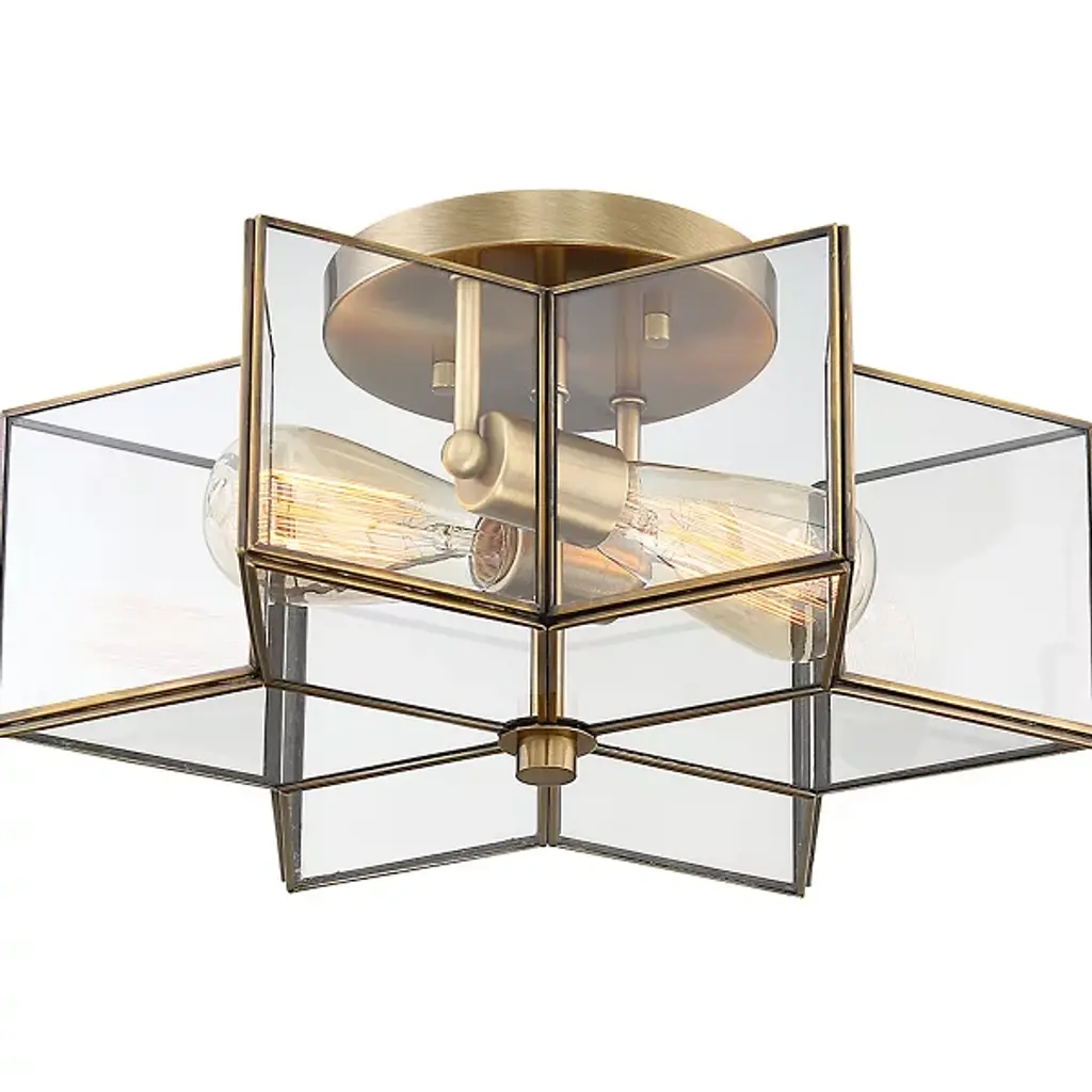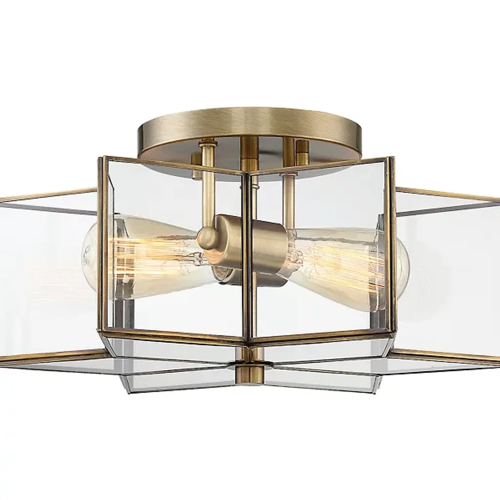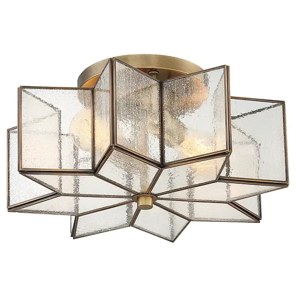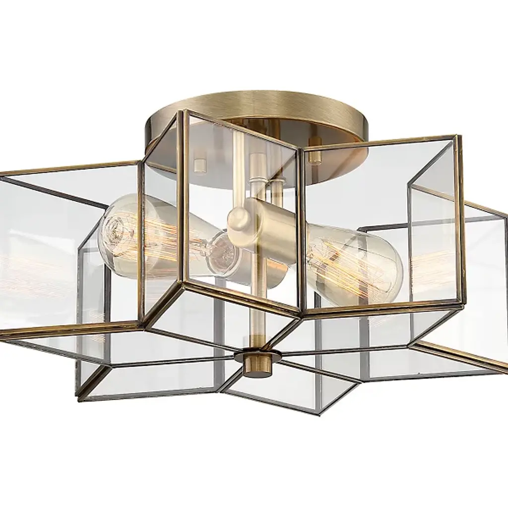 Playing to all the angles. Offering unique geometry from every point of view, the Mathew Semi-Flushmount by Alder & Ore sports a medley of rectangular and diamond-shaped glass panels. Each surface is edged with handsome metal framing, giving context to the multiple bulbs which provide ample lighting performance for a mid-sized to larger room.