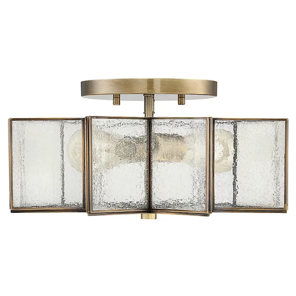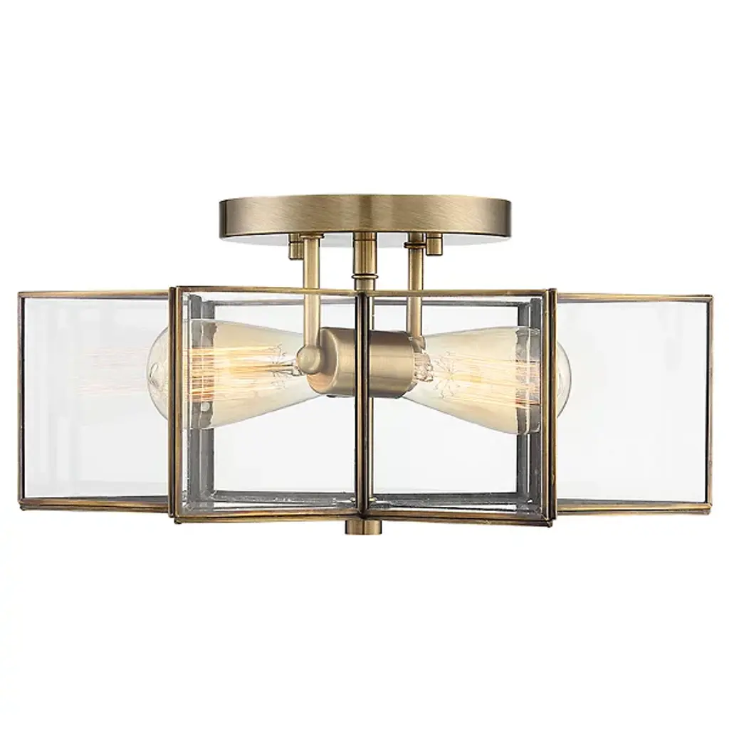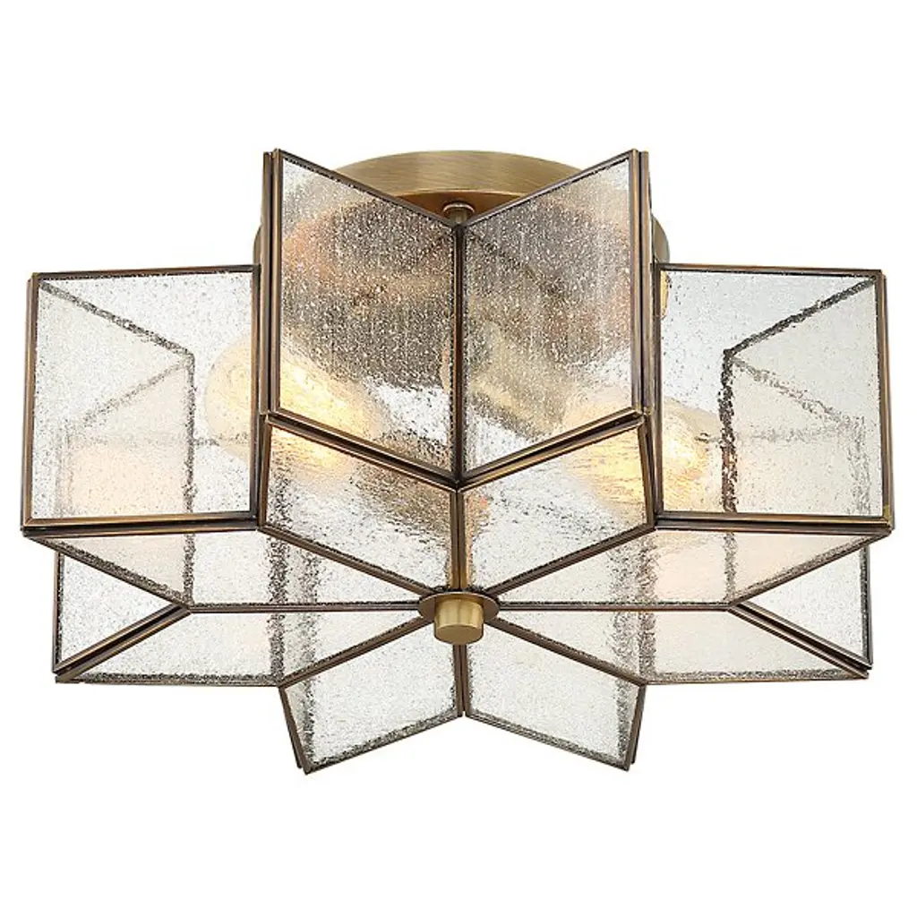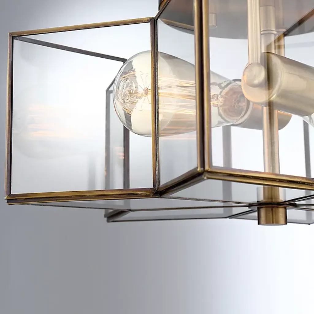 Playing to all the angles. Offering unique geometry from every point of view, the Mathew Semi-Flushmount by Alder & Ore sports a medley of rectangular and diamond-shaped glass panels. Each surface is edged with handsome metal framing, giving context to the multiple bulbs which provide ample lighting performance for a mid-sized to larger room.