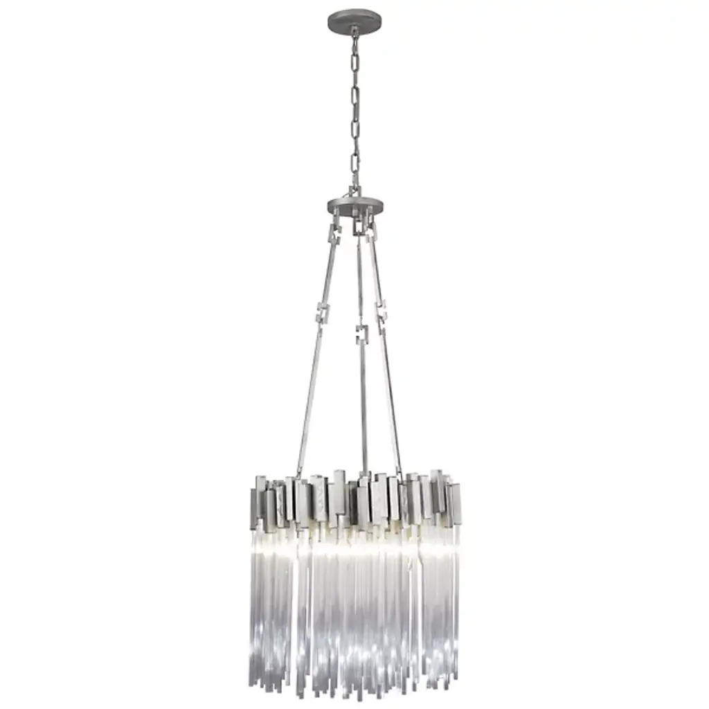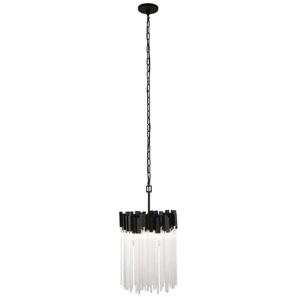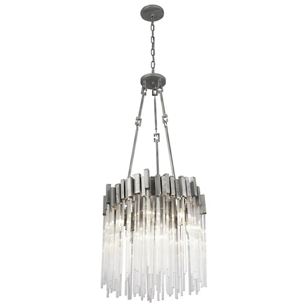 A marriage of texture and light. Varaluz's Matrix 3-Light Pendant has beautiful clear fluted Glass rods that appear suspended from the jagged composition of the Steel base. Hammered details lend the texture it needs to contrast the Glass, lending further subtle details to this fixture. Made of recycled and Hand-forged materials, this piece is also Handcrafted and will brighten up your home for years to come. Accent the hallway by mounting it in a series or liven up a corner of the living room with its opulent, glam-inspired design. The illumination peaks through each Glass rod to ensure it looks amazing from every angle.