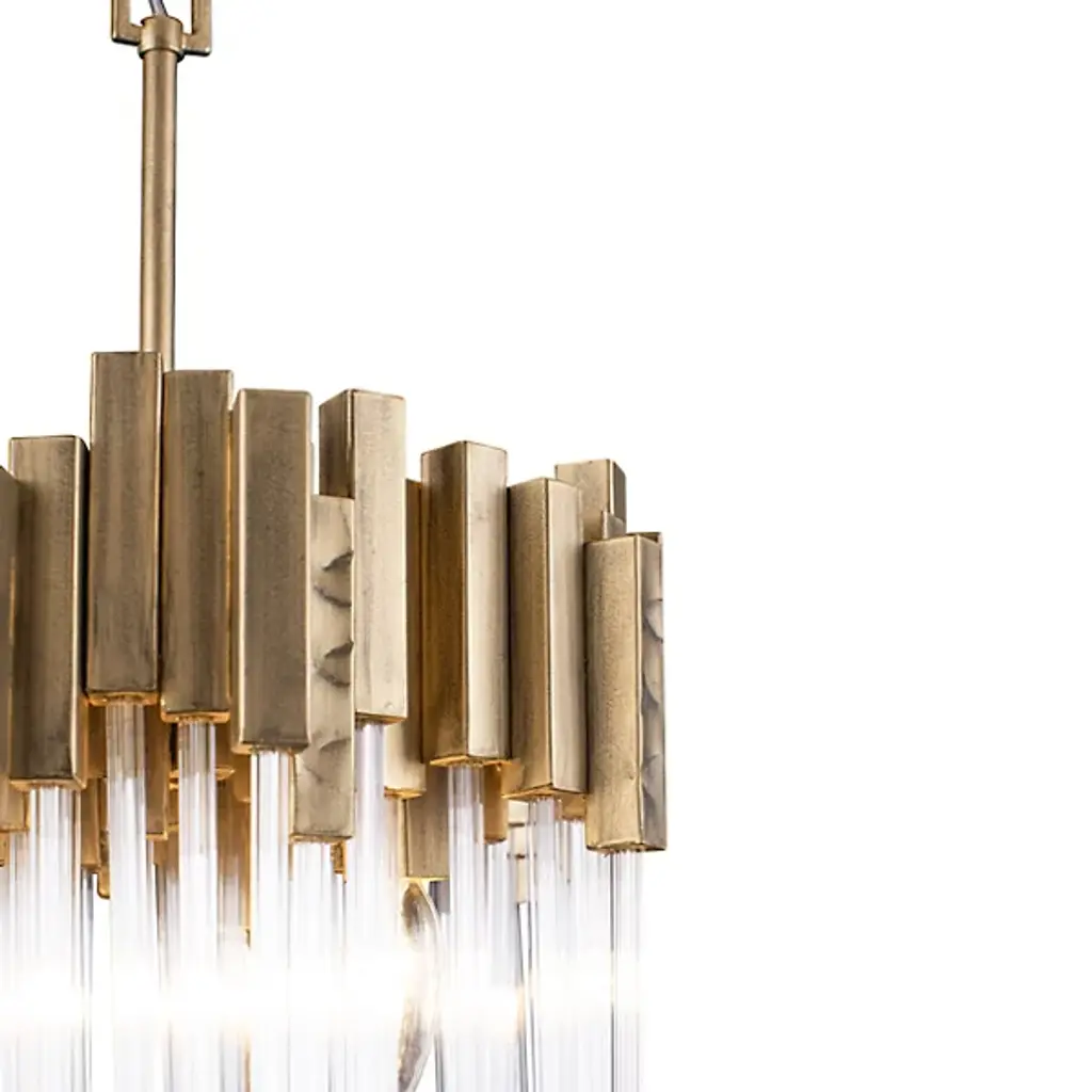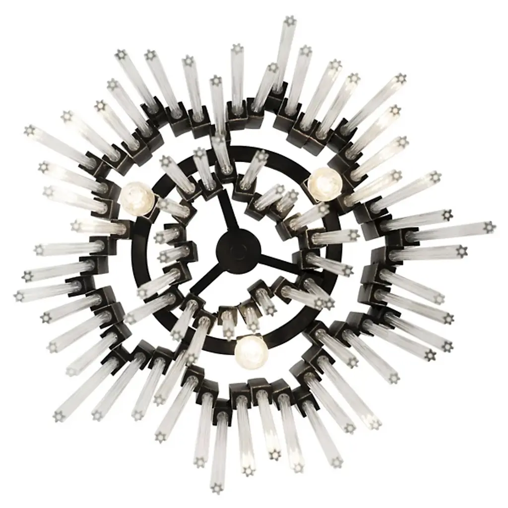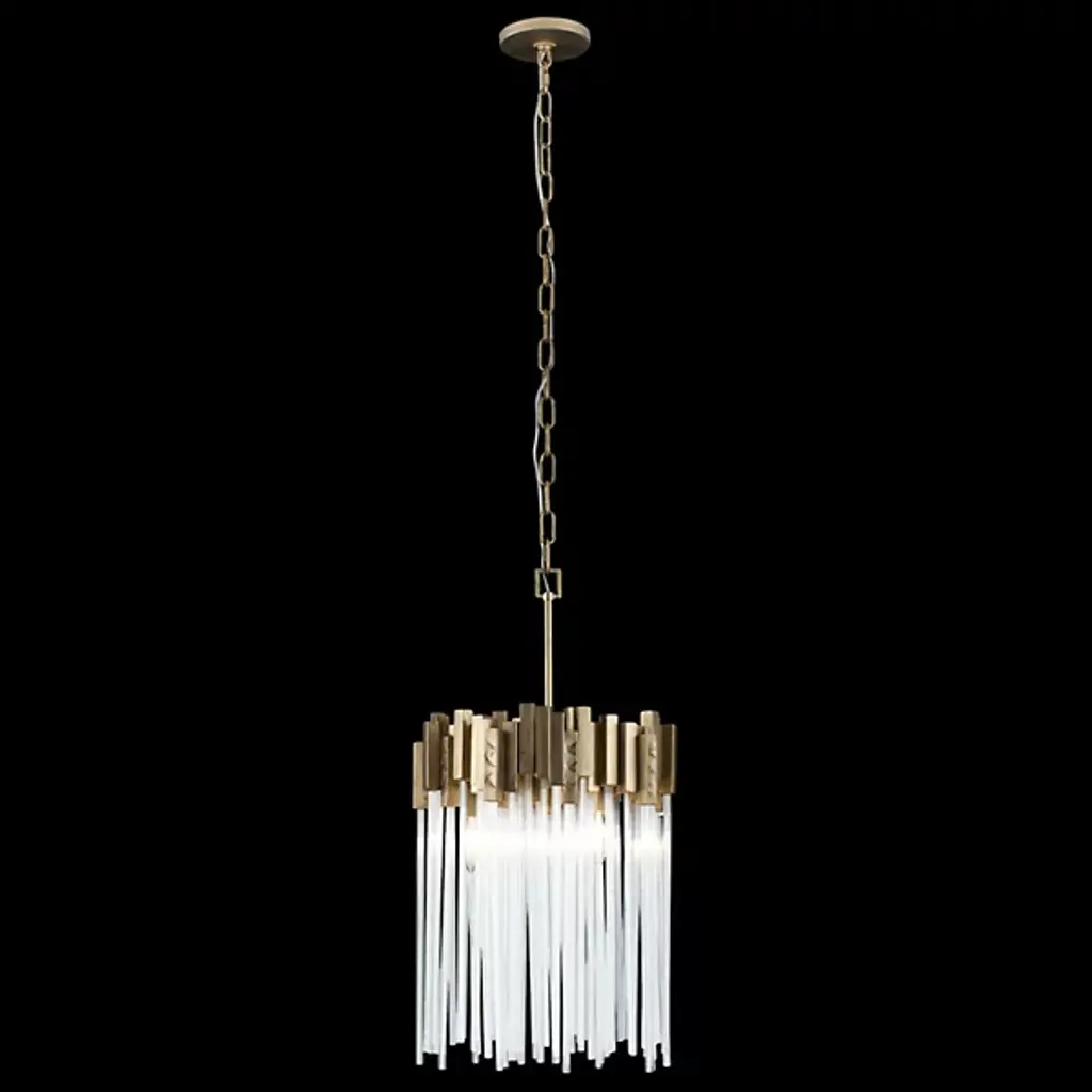 A marriage of texture and light. Varaluz's Matrix 3-Light Pendant has beautiful clear fluted Glass rods that appear suspended from the jagged composition of the Steel base. Hammered details lend the texture it needs to contrast the Glass, lending further subtle details to this fixture. Made of recycled and Hand-forged materials, this piece is also Handcrafted and will brighten up your home for years to come. Accent the hallway by mounting it in a series or liven up a corner of the living room with its opulent, glam-inspired design. The illumination peaks through each Glass rod to ensure it looks amazing from every angle.