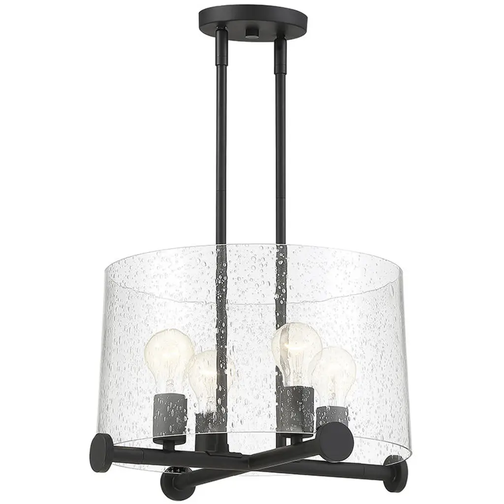 Hip and Airy, Matteson is at home in an Urban Loft or a Modern Farmhouse. The tapered clear seedy glass shades sit effortlessly between the bold knurled knobs giving sophisticated credit to both form and function.