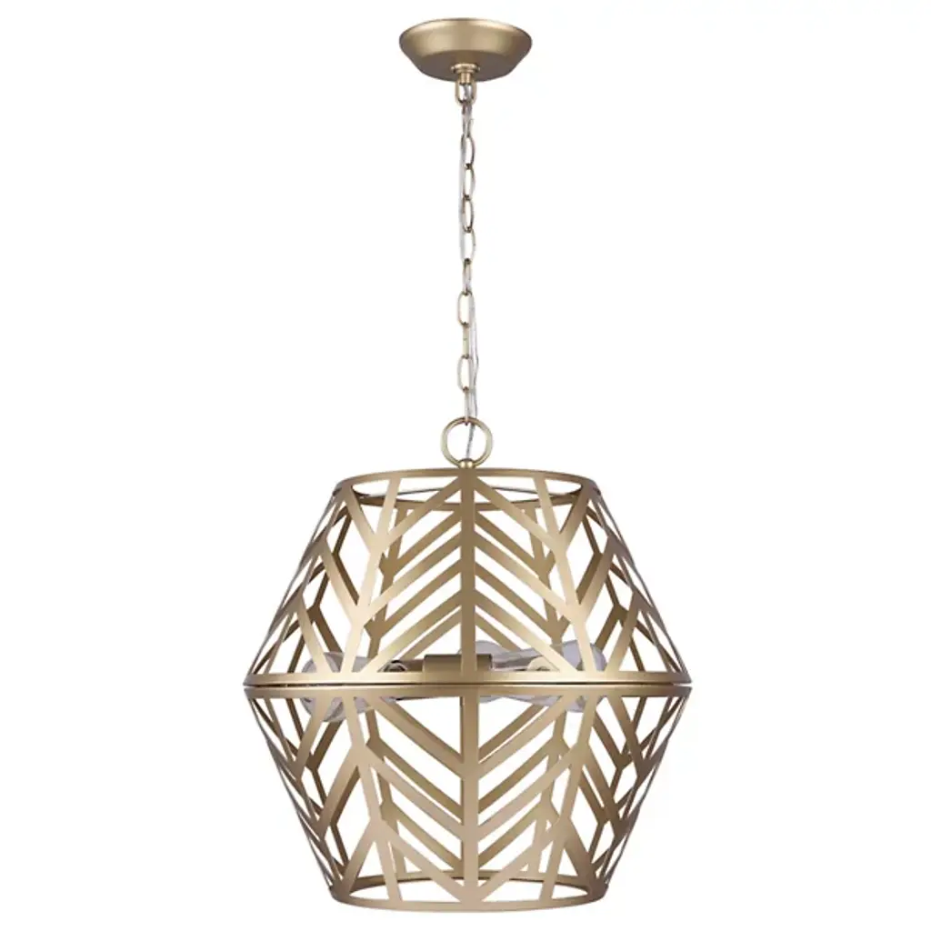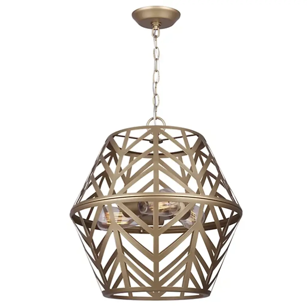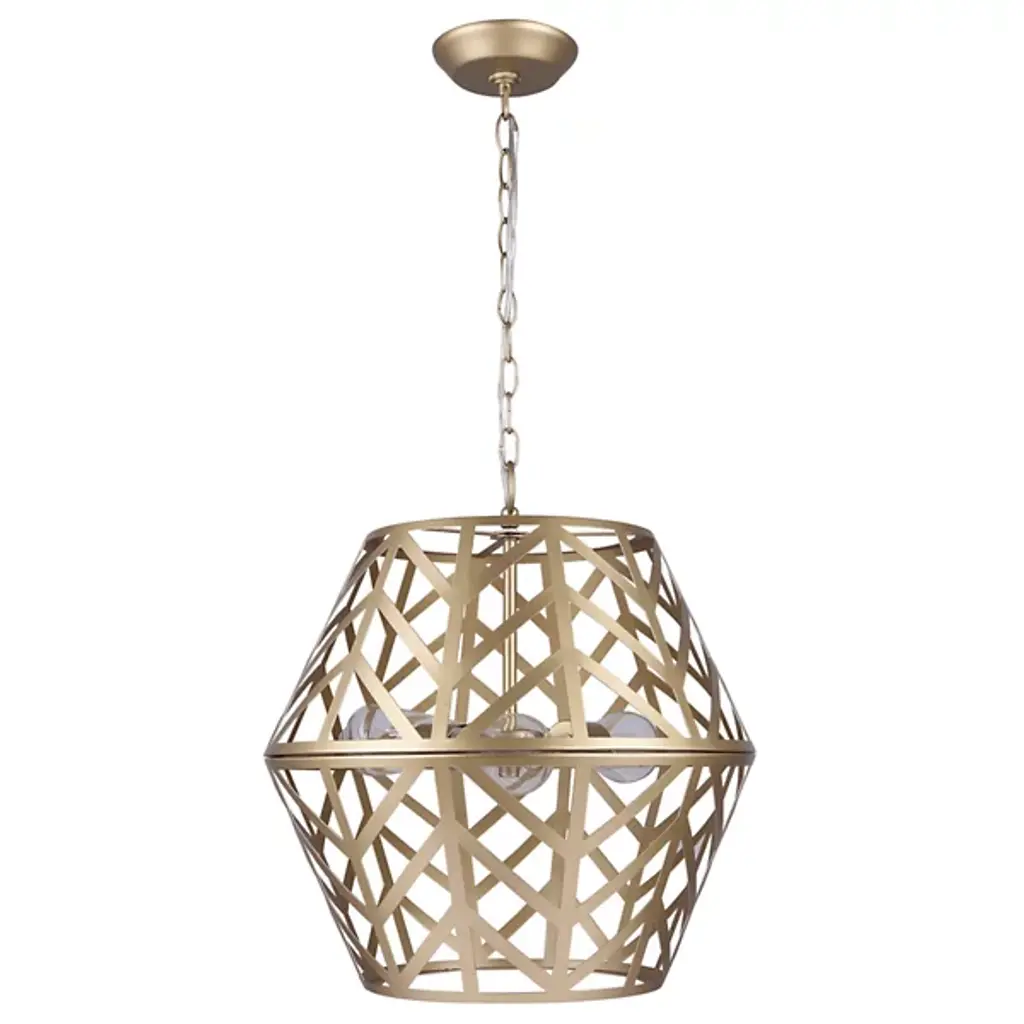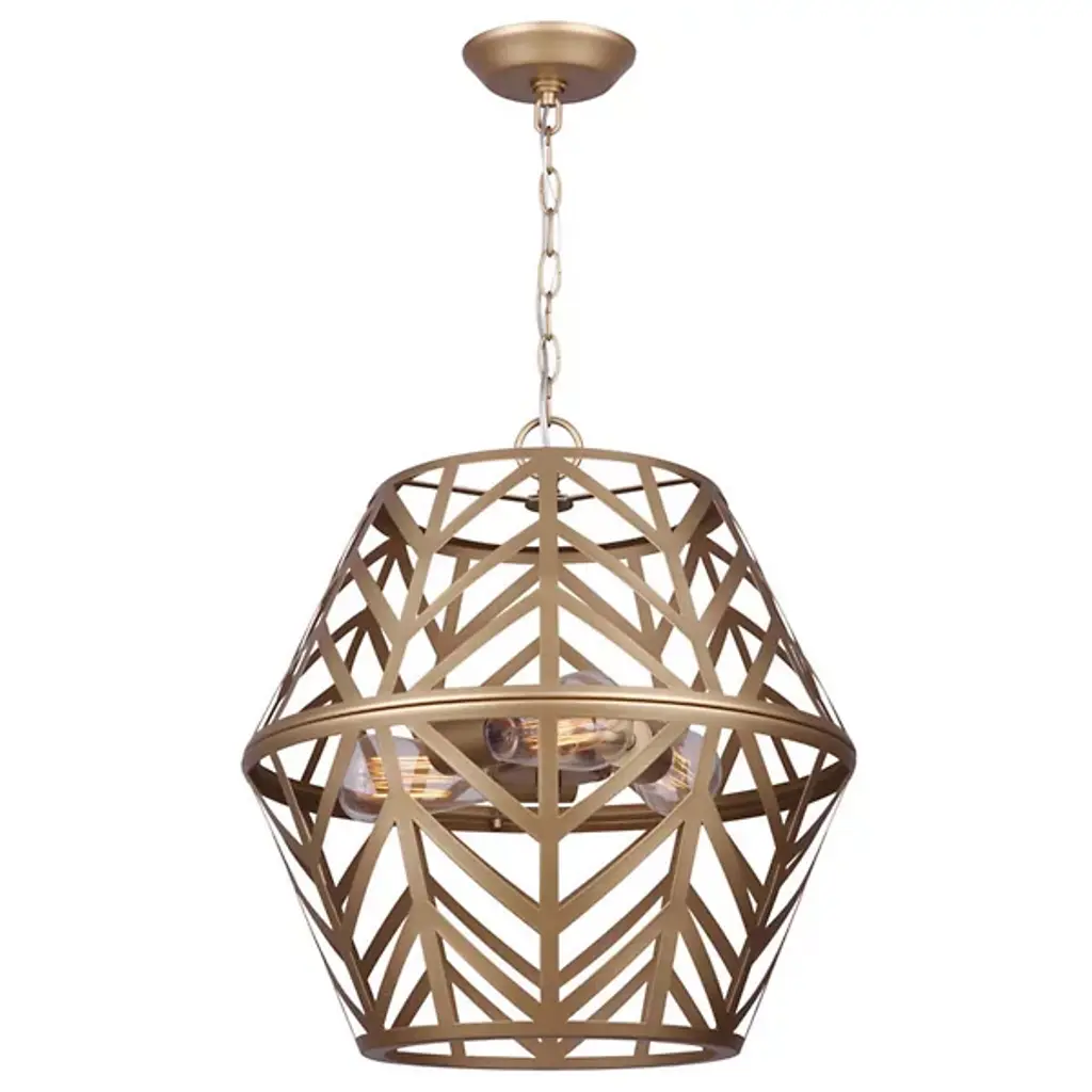 The Maud Cage Pendant from Canarm showcases an innovative geometric framework that turns standard lighting into an architectural statement. Three light bulbs nestle within the structured metalwork, providing balanced radiance. The included PGD sleeves add refinement to the light sources. This chandelier fits perfectly in entryways, dining spaces, or living rooms, requiring both presence and purpose. Its engineered hanging system ensures secure mounting. The metal framework demonstrates expert craftsmanship through precise angular cuts and stable construction, creating an enduring lighting solution.