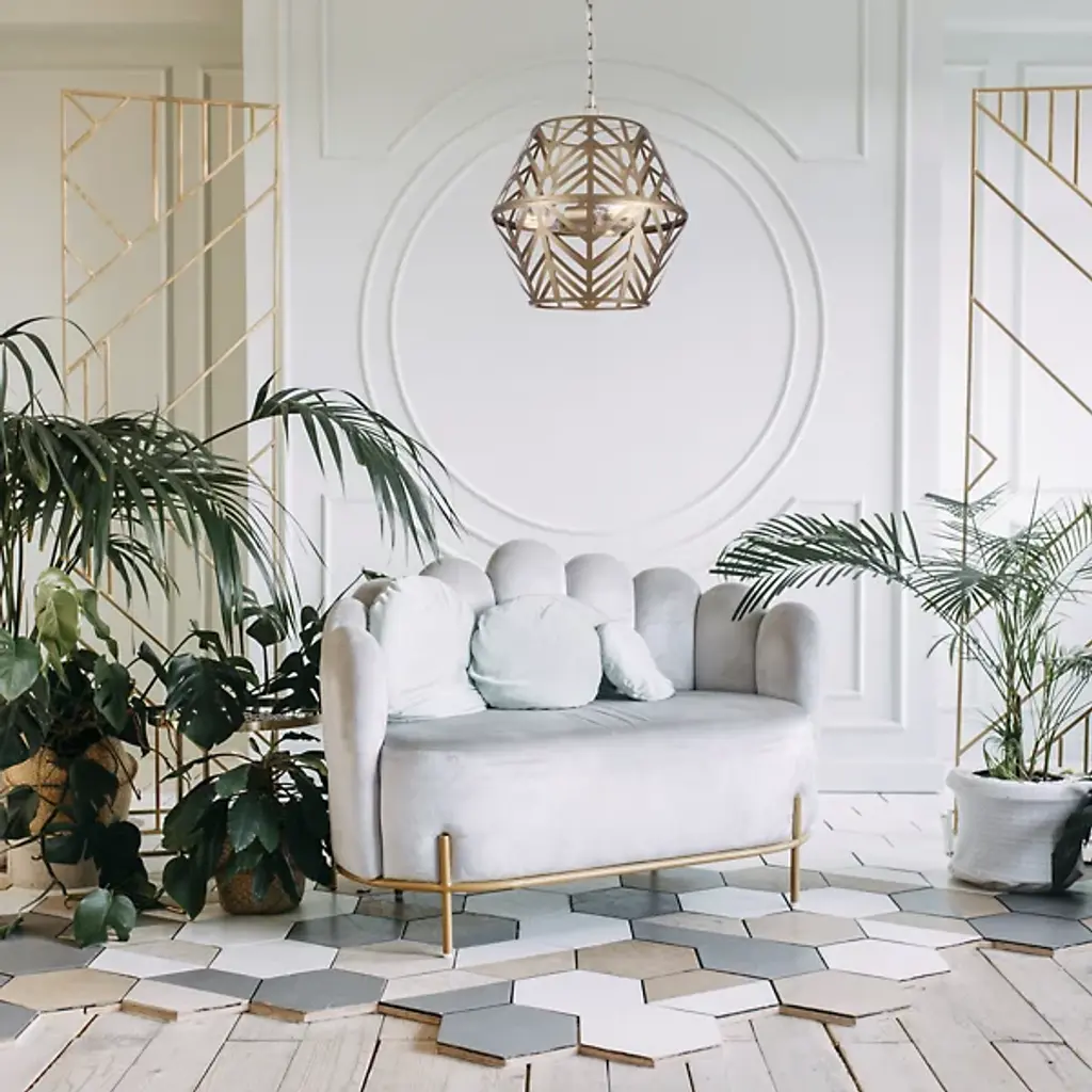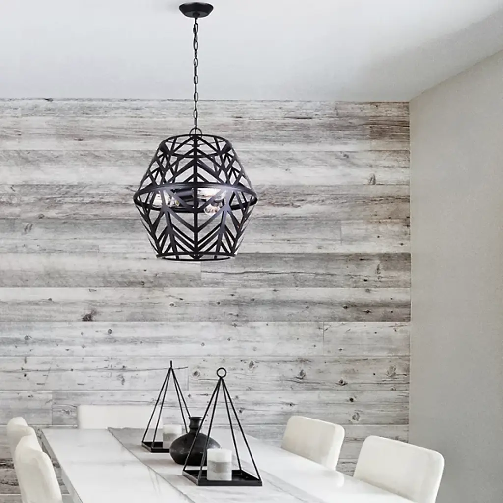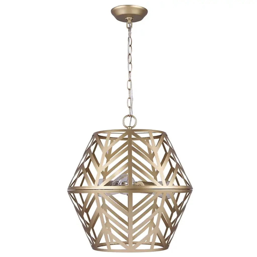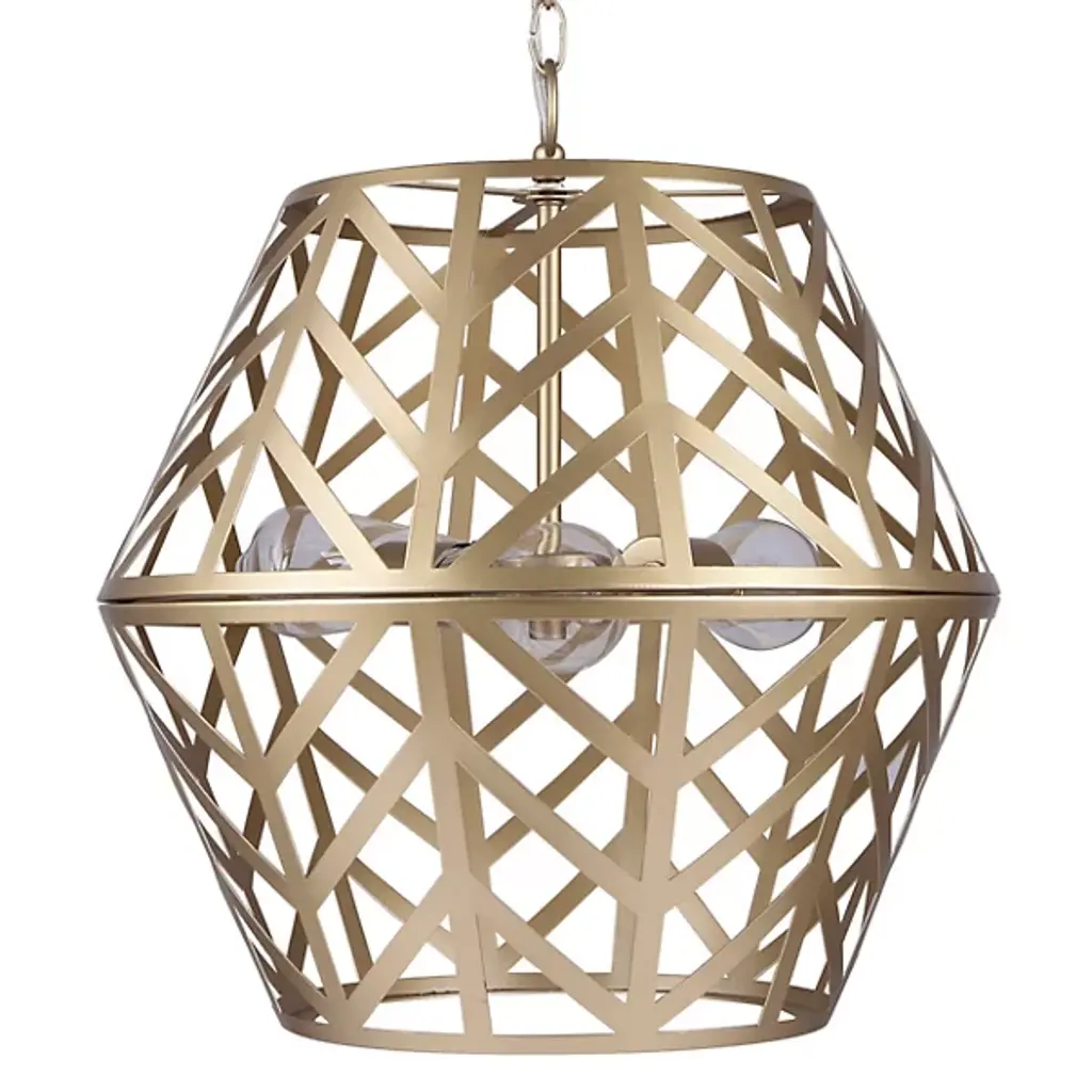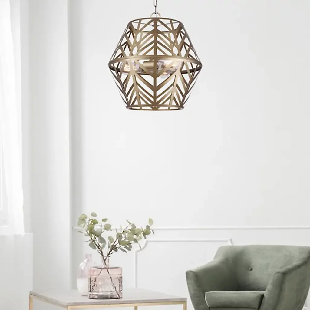 The Maud Cage Pendant from Canarm showcases an innovative geometric framework that turns standard lighting into an architectural statement. Three light bulbs nestle within the structured metalwork, providing balanced radiance. The included PGD sleeves add refinement to the light sources. This chandelier fits perfectly in entryways, dining spaces, or living rooms, requiring both presence and purpose. Its engineered hanging system ensures secure mounting. The metal framework demonstrates expert craftsmanship through precise angular cuts and stable construction, creating an enduring lighting solution.