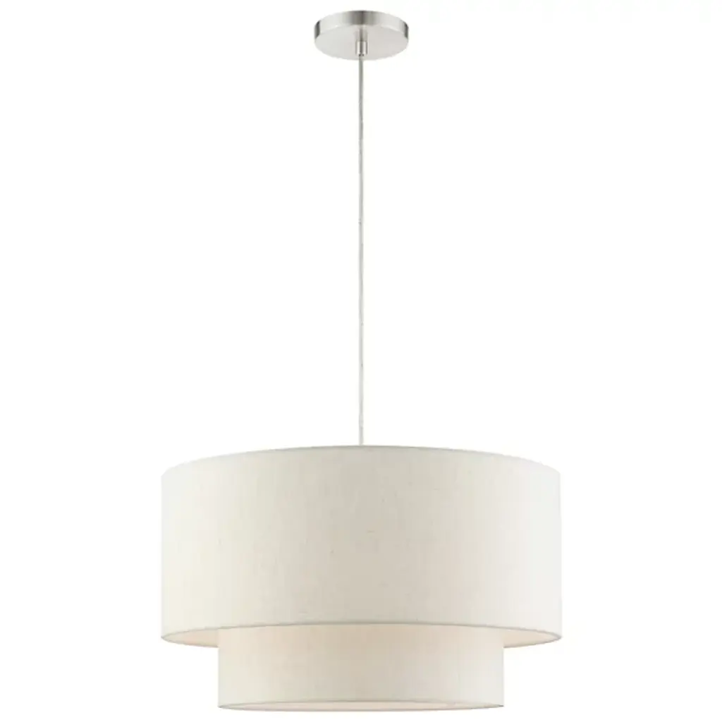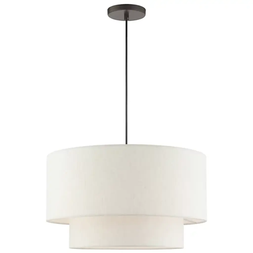 Lovely, layered light. Treat yourself to a bright, soothing atmosphere with the Maureen Double Drum Pendant from Alder & Ore suspended overhead. Versatile in style, the pendant sports a transitional design underlined by the blend of classic drum shapes with a minimalist presentation. From a compact canopy, the pendant streams down with an ultra-fine cord for a clean look on its own or in series. Featuring inspiring proportions, the shades seduce in their concentric drum forms. Artisans craft the shades by hand in a fabric hardback construction. A flip of the switch glazes the shades a warm hue and gives the room a great sense of radiant ambiance.