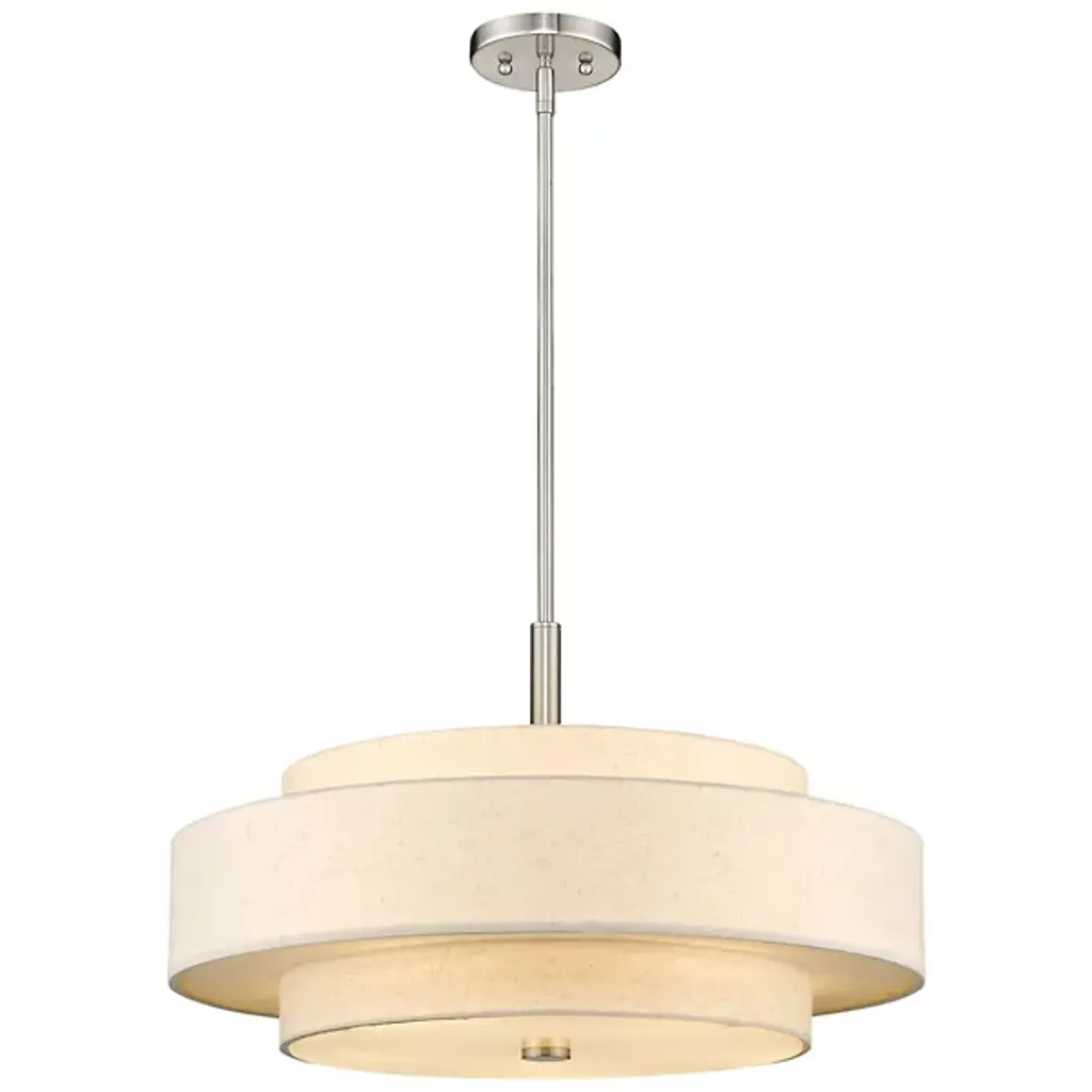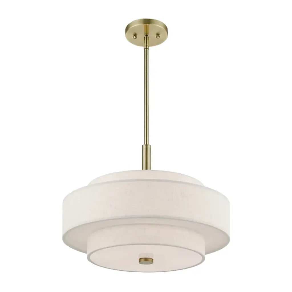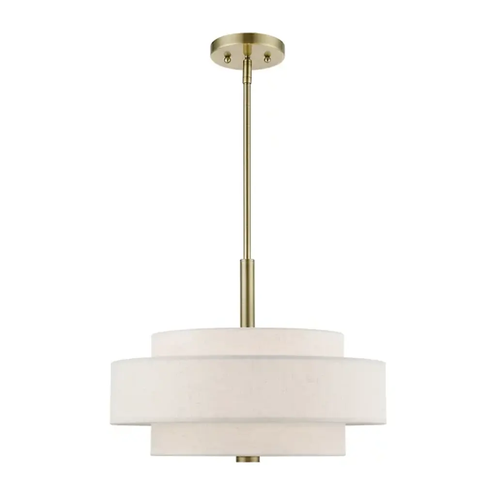Generous proportions make for a robust light in the Maureen Pendant from Alder & Ore. The pendant matches the refined aesthetic of today’s living space. Artisans craft each of its hardback shades by hand using fabric. The shades provide subtle, textured elegance in their oatmeal finish. As a combination of drum shapes, the shades complement each other with an attractive sculptural quality. Having a group of shades translates to a super soft quality of light. The pendant generates a filling aura of illumination with a glare-free feel.
