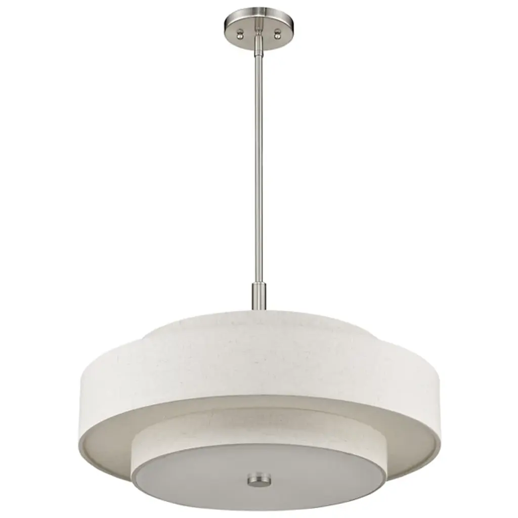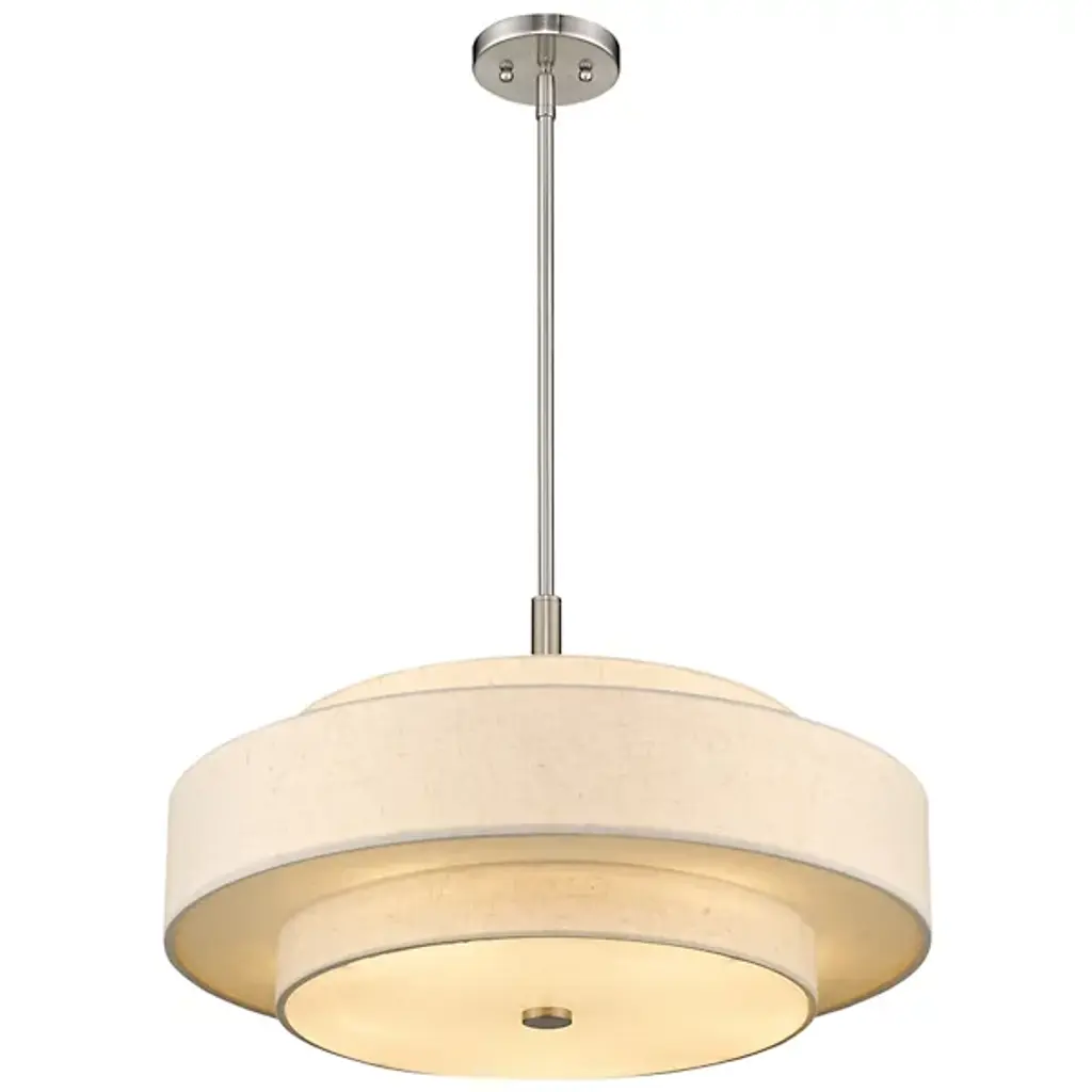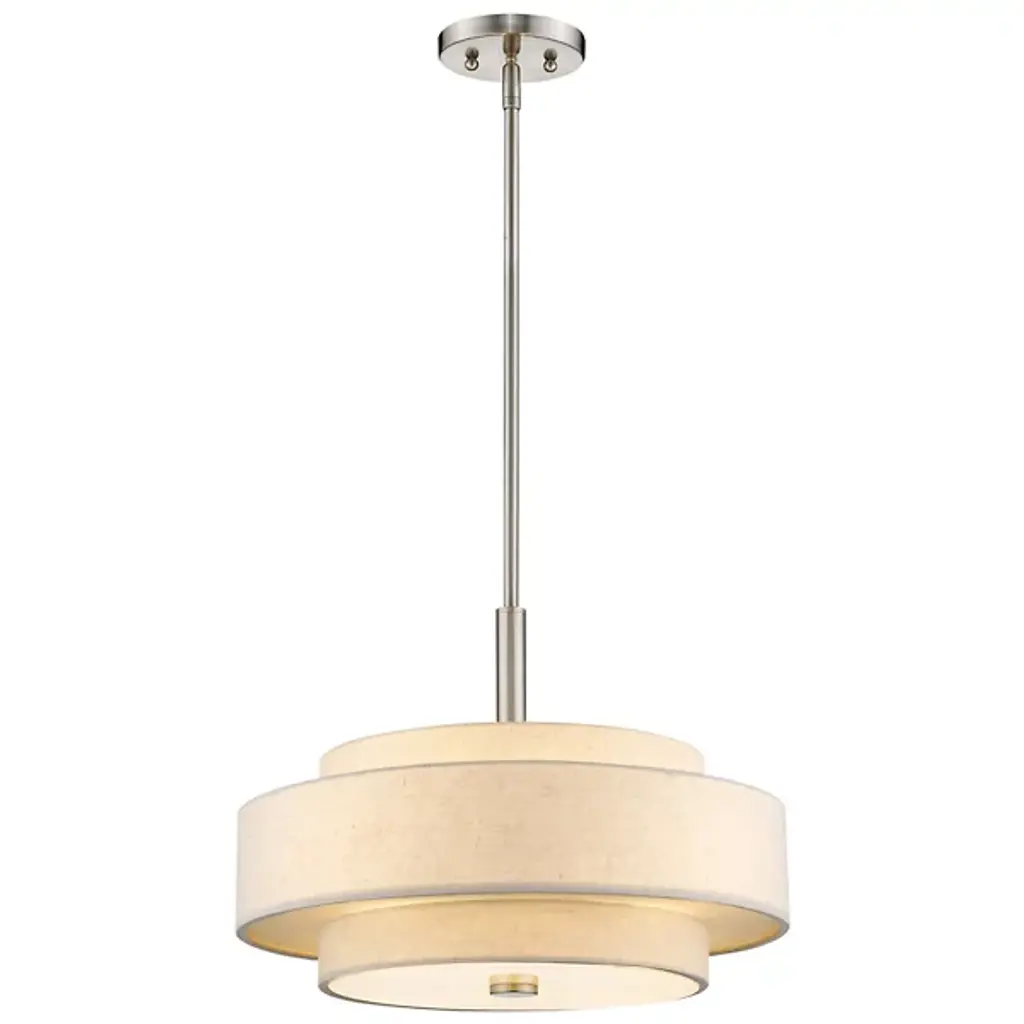 Generous proportions make for a robust light in the Maureen Pendant from Alder & Ore. The pendant matches the refined aesthetic of today’s living space. Artisans craft each of its hardback shades by hand using fabric. The shades provide subtle, textured elegance in their oatmeal finish. As a combination of drum shapes, the shades complement each other with an attractive sculptural quality. Having a group of shades translates to a super soft quality of light. The pendant generates a filling aura of illumination with a glare-free feel.