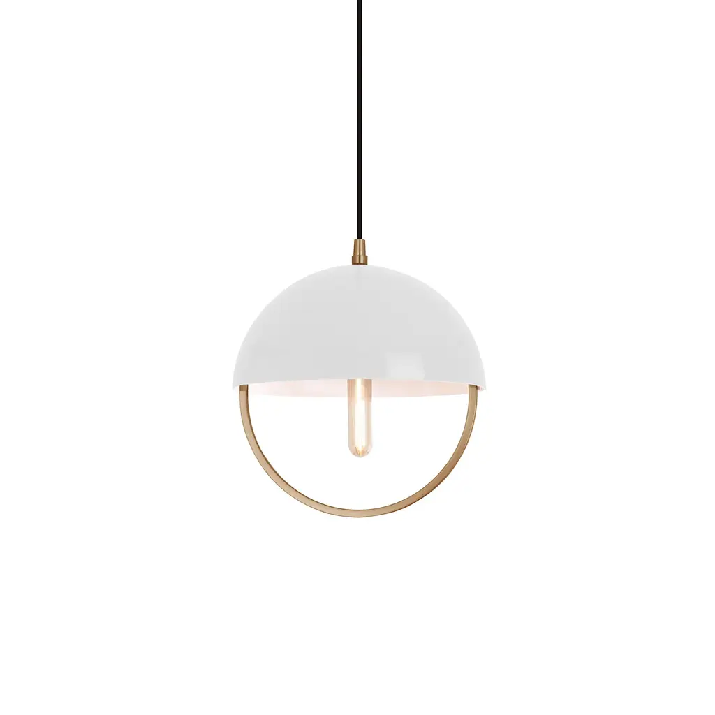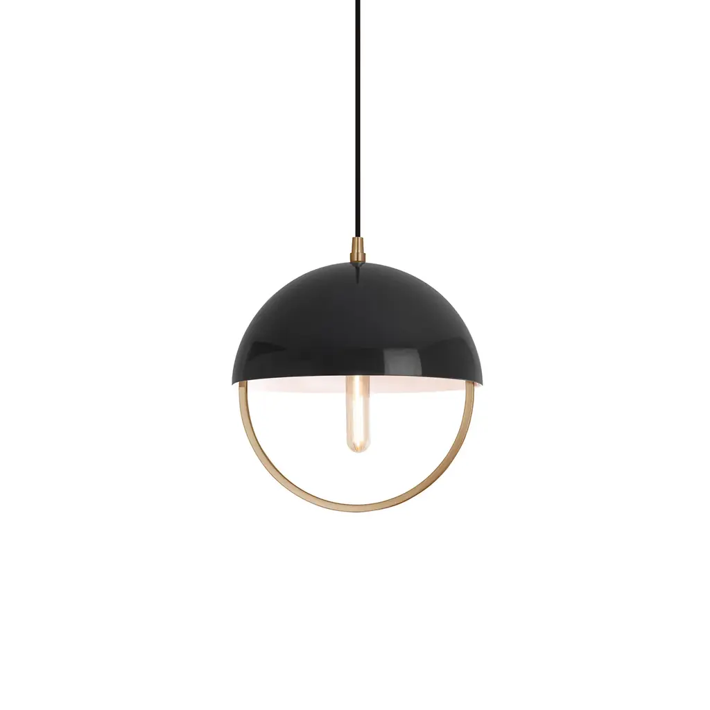 The Mavisten Edition Copernica LED Pendant Light from Robert Abbey captivates with its galaxy-inspired, mid-century modern design. Featuring clean, precise shapes suspended from a compact canopy, it fits seamlessly into tight spaces. A metal ring resembling a star’s trajectory supports a dome-shaped glass shade, evoking the image of a planet. A single lamp beneath casts a crisp downward glow alongside a lively ambient light, adding a sophisticated and celestial touch to any room. Highlights