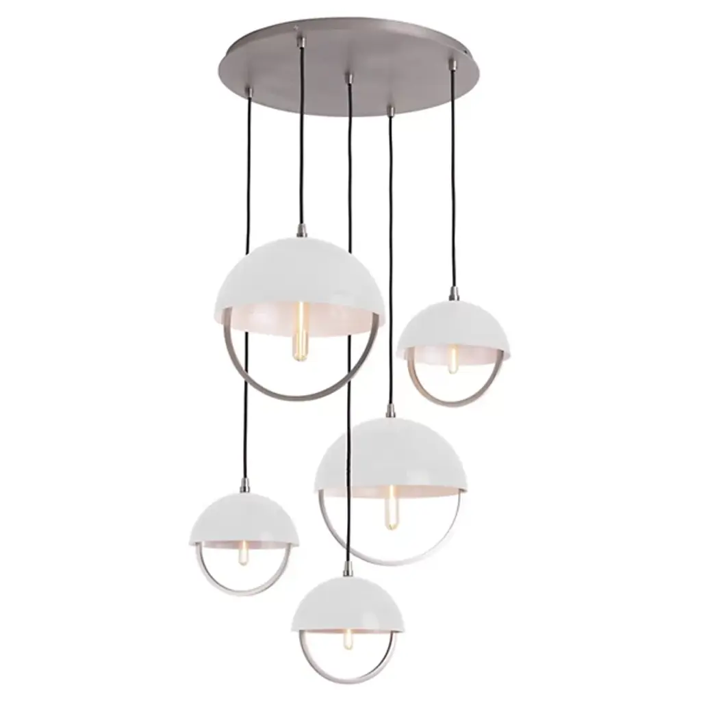 Elevate your space with the Mavisten Edition Copernica Multi-Light Pendant from Robert Abbey. This distinctive pendant features a striking globe-shaped design that adds a contemporary flair to any room, creating a stunning visual centerpiece. With its dome-shaped metal shade, it's perfect for modern kitchens, dining rooms, living rooms, bedrooms, or hallways. The LED functionality enhances the allure of this piece, making it a functional lighting solution for a variety of spaces. Beautifully crafted, it merges form with function seamlessly.