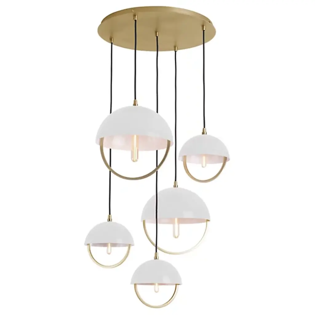 Elevate your space with the Mavisten Edition Copernica Multi-Light Pendant from Robert Abbey. This distinctive pendant features a striking globe-shaped design that adds a contemporary flair to any room, creating a stunning visual centerpiece. With its dome-shaped metal shade, it's perfect for modern kitchens, dining rooms, living rooms, bedrooms, or hallways. The LED functionality enhances the allure of this piece, making it a functional lighting solution for a variety of spaces. Beautifully crafted, it merges form with function seamlessly.