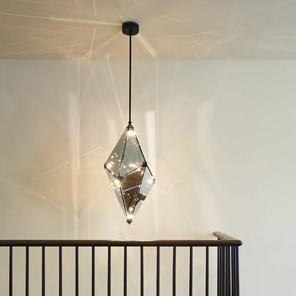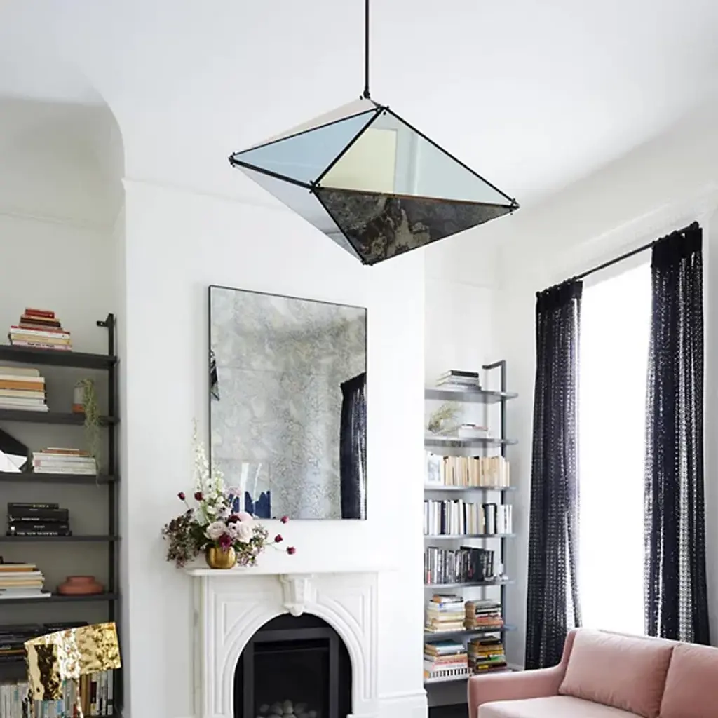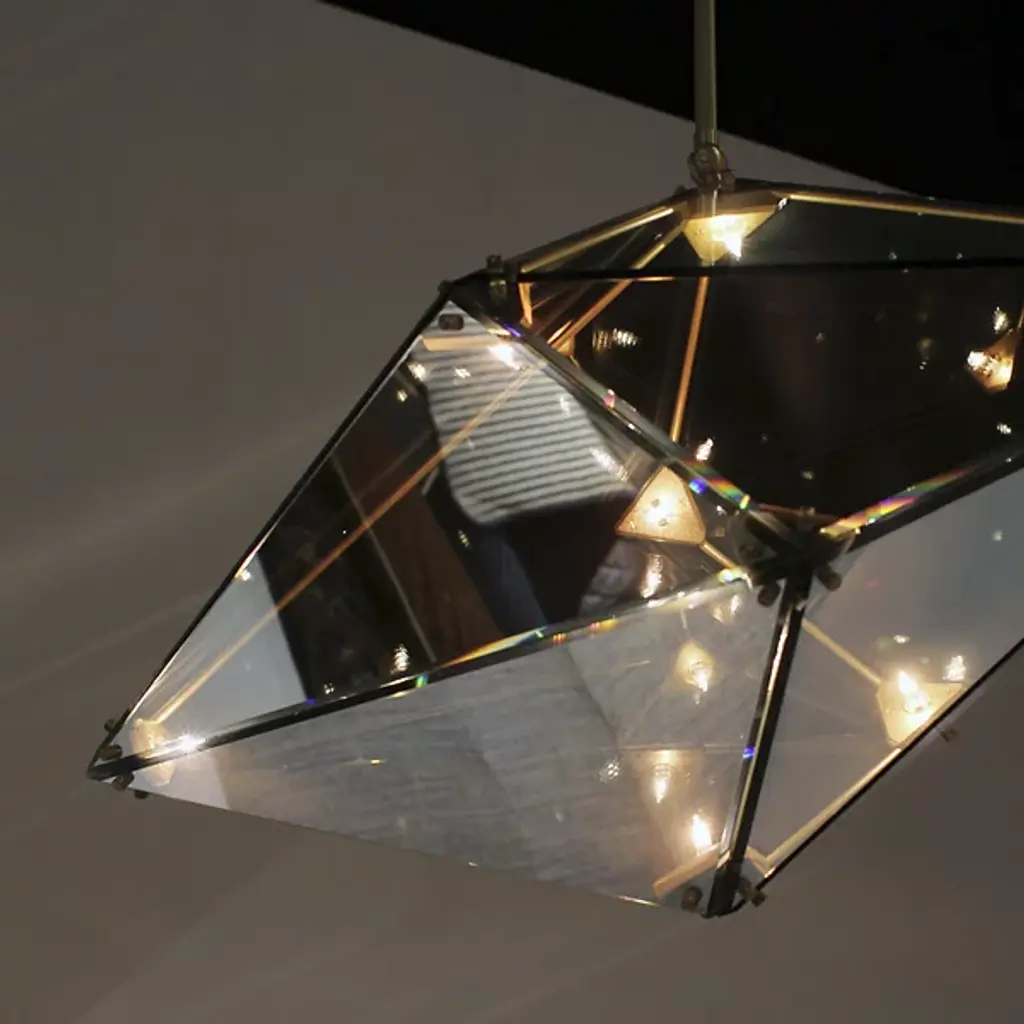 The Maxhedron Pendant from Roll & Hill gives your living space an avant-garde style. It is designed by Bec Brittain, who experiments with light and reflection, crafting a transformative piece that exudes luxury. The lighting effect is reminiscent of a constellation, bringing brilliance to your environment. Maxhedron is composed of transparent mirror glass that has been expertly formed, showcasing sharp angles and geometric precision. Brass and steel add durability to this sloped-ceiling adaptable lighting solution, while LEDs provide ample illumination.