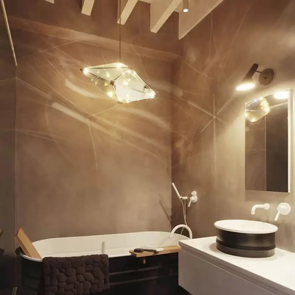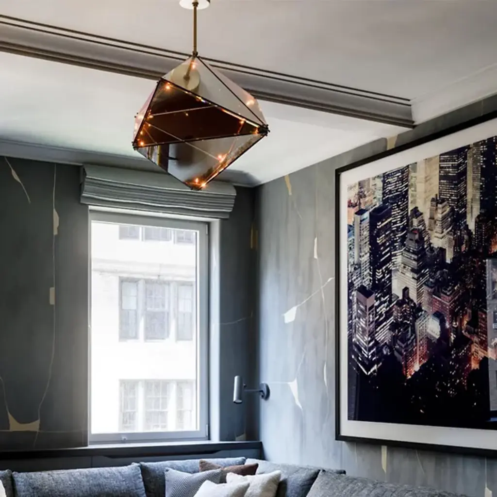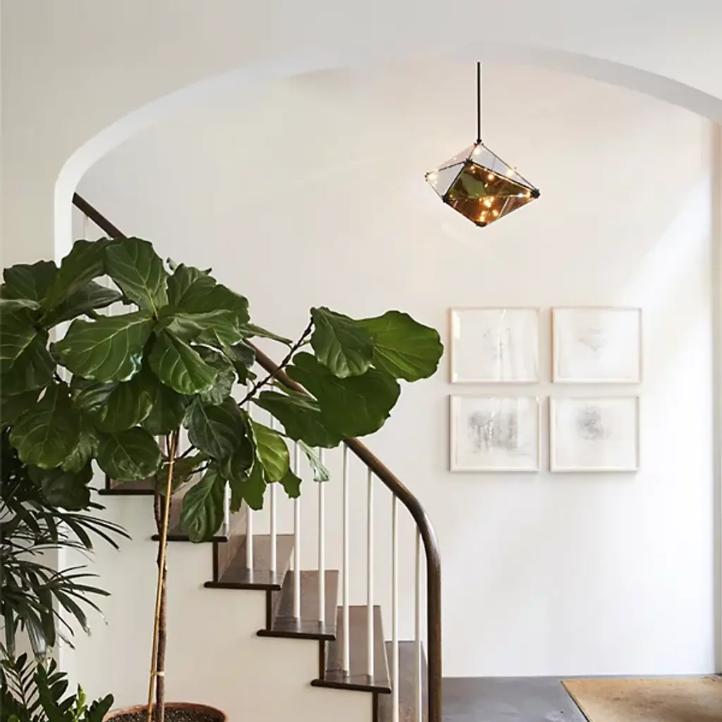 The Maxhedron Pendant from Roll & Hill gives your living space an avant-garde style. It is designed by Bec Brittain, who experiments with light and reflection, crafting a transformative piece that exudes luxury. The lighting effect is reminiscent of a constellation, bringing brilliance to your environment. Maxhedron is composed of transparent mirror glass that has been expertly formed, showcasing sharp angles and geometric precision. Brass and steel add durability to this sloped-ceiling adaptable lighting solution, while LEDs provide ample illumination.