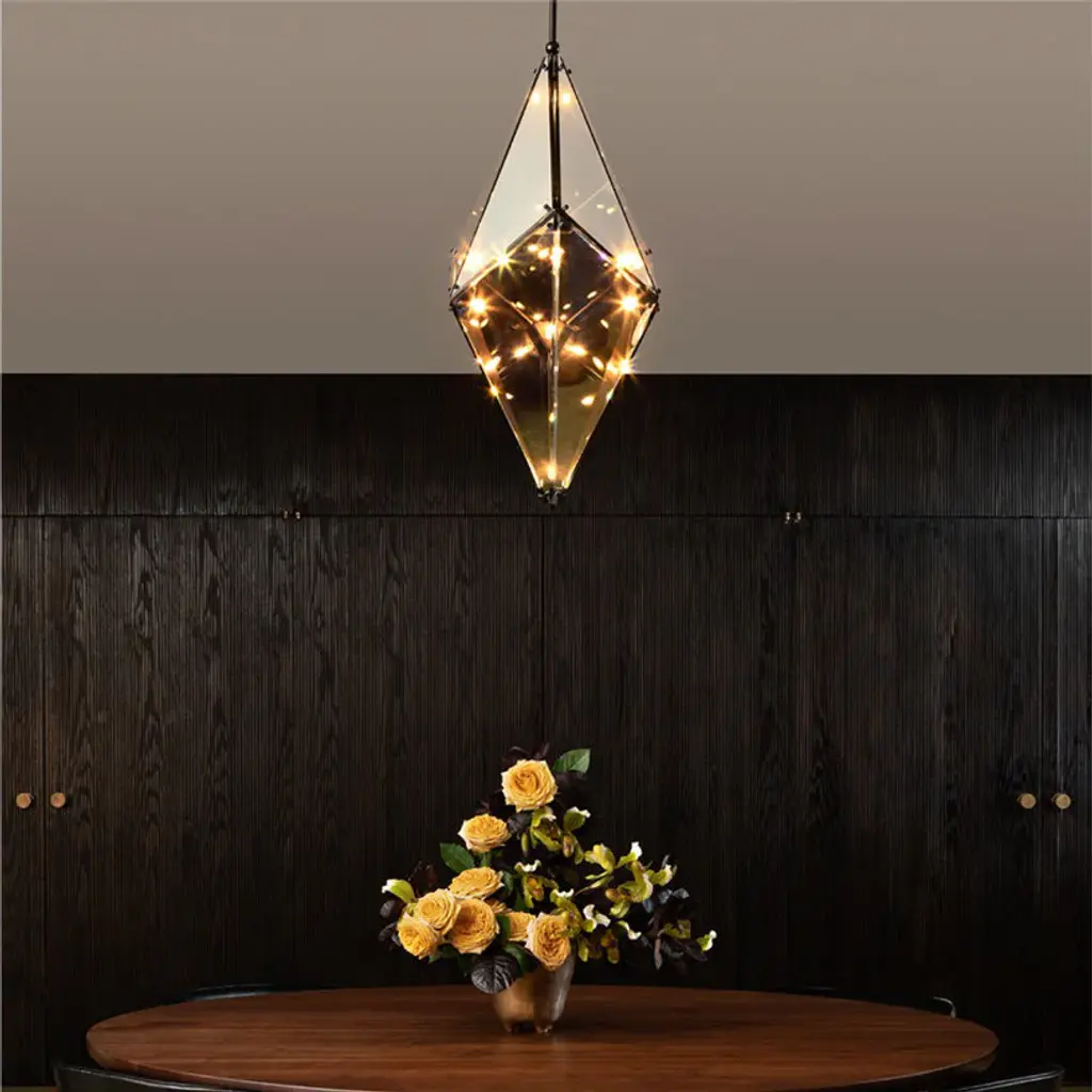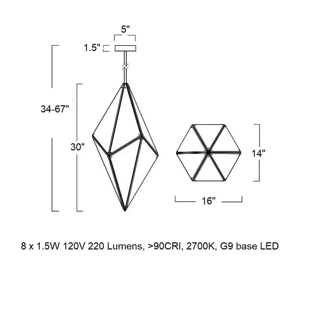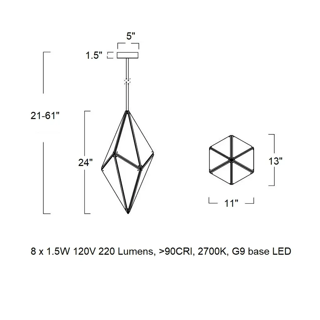 Experience a taste of the avant-garde with the Maxhedron Vertical LED Pendant Light from Roll & Hill. Designed by Bec Brittain, it boasts a transformative lighting effect that resembles a constellation. The transparent mirror glass and sleek angles add a touch of luxury to your space, while the brass and steel ensure durability. Illuminate your surroundings with this sophisticated and exclusive piece. Highlights