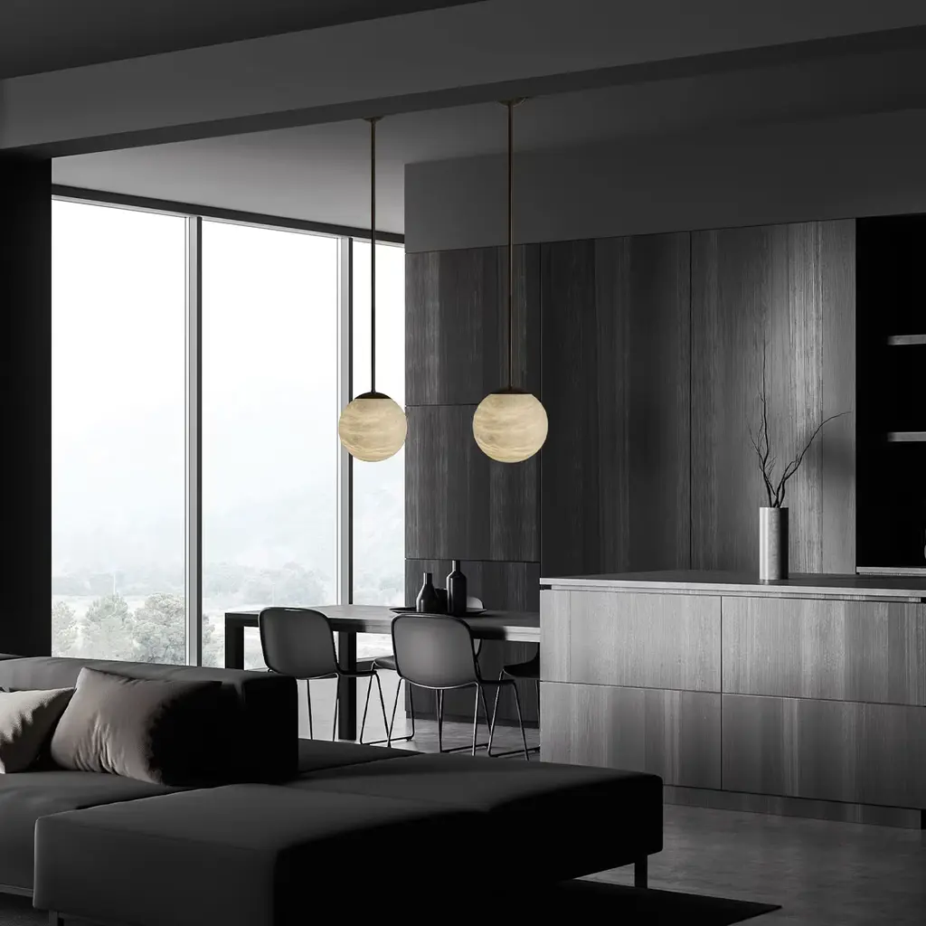 "Maxi Alabaster Moon" Pendant Lamp In Bronze