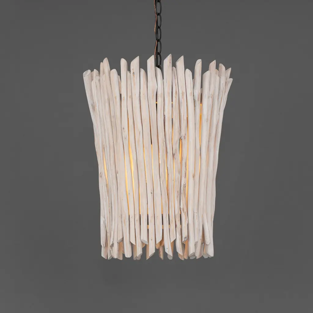 Thin branches of eucalyptus are linked together into a tapered bouquet shade. Individually shaped by hand, the impeccable craftsmanship includes a hand-applied finish on the wood that complements the multi-tonal finish on the metal.Features:Dimensions:Electrical Specifications: