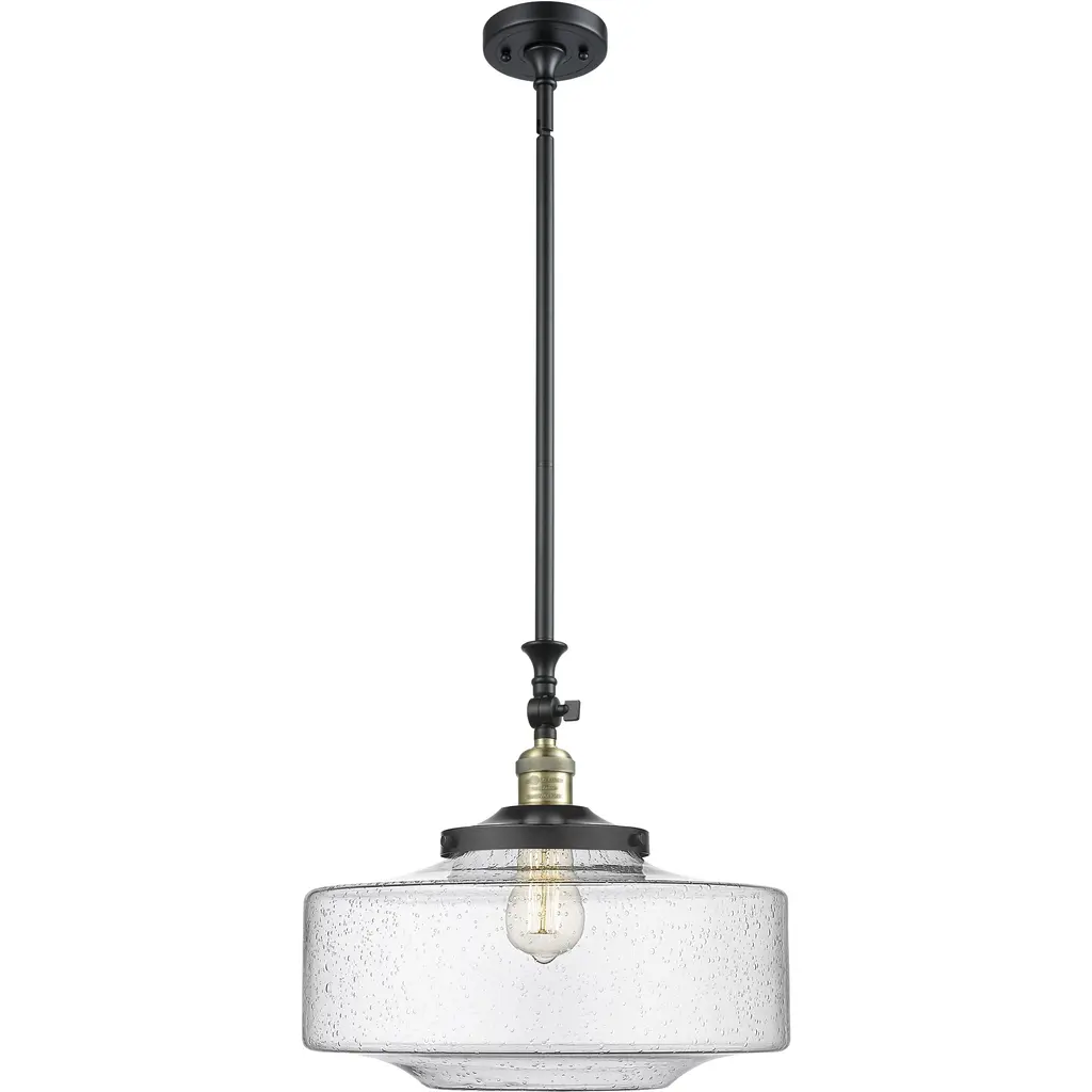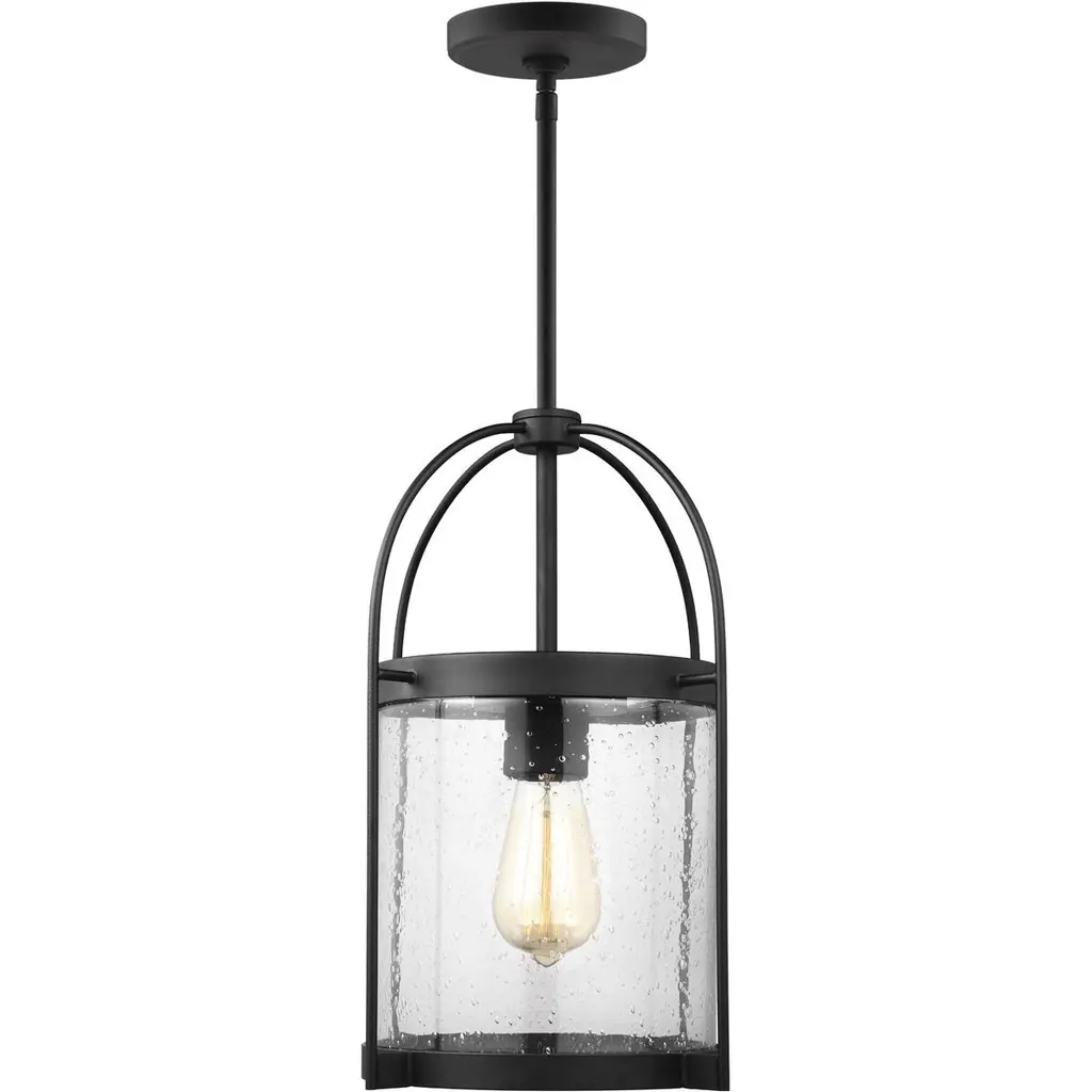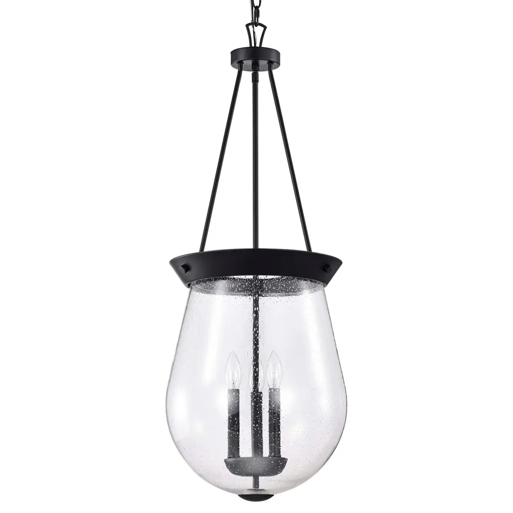 A clean and simple frame features arms that gently bend to support a Clear Seedy glass in a traditional bell shape. An easy choice for a transitional look, available in matte Black or Satin Nickel. Canopy Included: Yes Canopy Diameter: 5.00 Sloped Ceiling Adaptable: Yes Dimmable: Yes Shade Included: Yes Shade Dimensions: 13.00