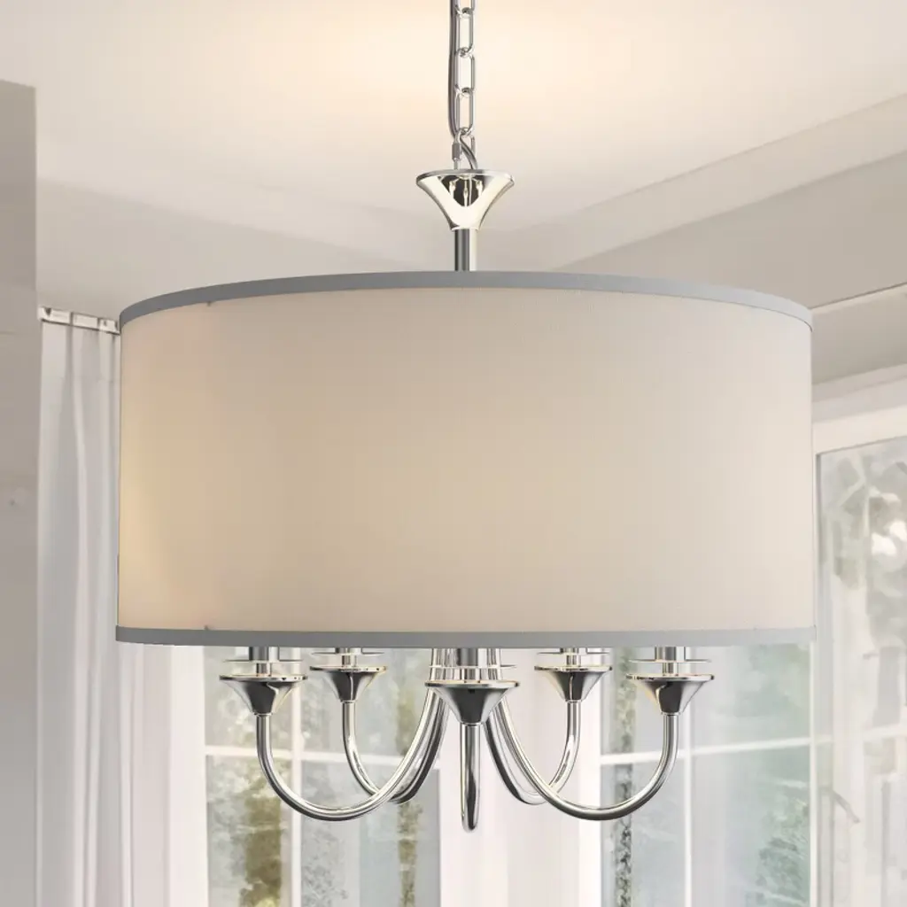 This current trend collection of drum shade lighting is available in your choice of Oatmeal with Oil Rubbed Bronze or White Linen with Satin Nickel frames. This collection works in wide variety of decor styles from traditional to contemporary and comes at a very attractive price. Chain Length: 36.00 Dimmable: Yes