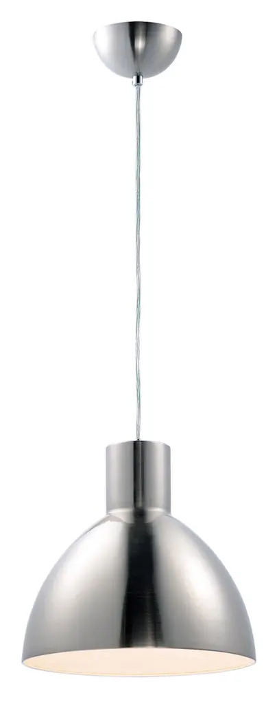 Spun metal shades in various sizes are perfect for budget installations. Available in Black with gold interior and Satin Nickle with white interior, these pendants are very stylish. Mounting Direction: Down Canopy Included: Yes Canopy Diameter: 4.75 Sloped Ceiling Adaptable: Yes Dimmable: Yes Material: Steel, Finish Color: Satin Nickel, Width: 13.75", Height: 13.75", Length: 13.75", Hanging Method: Rod and Chain, Lamping Type: Incandescent, Number Of Bulbs: 1, Wattage: 60 Watts, Dimmable: Yes, Moisture Rating: Dry Rated