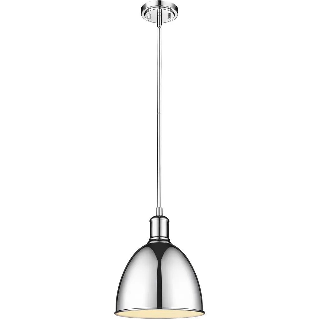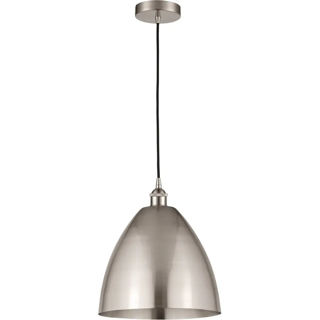 Spun metal shades in various sizes are perfect for budget installations. Available in Black with gold interior and Satin Nickle with white interior, these pendants are very stylish. Canopy Included: Yes Canopy Diameter: 4.75 Sloped Ceiling Adaptable: Yes Dimmable: Yes Material: Steel, Finish Color: Satin Nickel, Width: 8.75", Height: 8.75", Length: 8.75", Hanging Method: Rod and Chain, Lamping Type: Incandescent, Number Of Bulbs: 1, Wattage: 60 Watts, Dimmable: Yes, Moisture Rating: Dry Rated