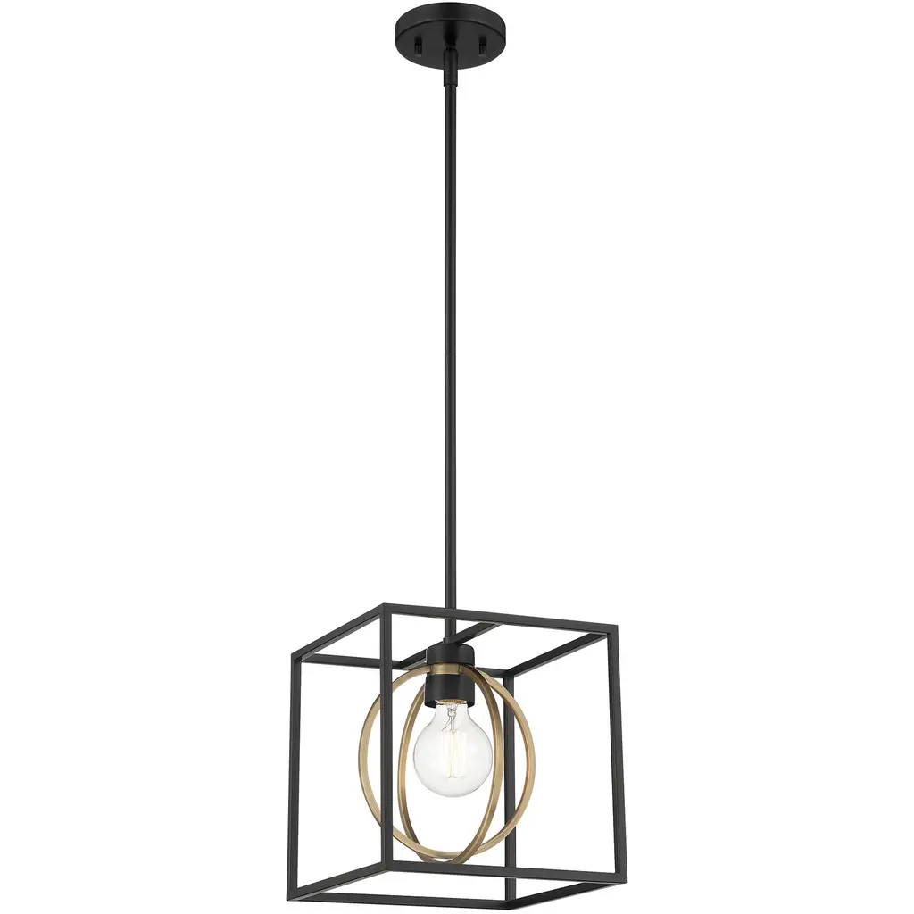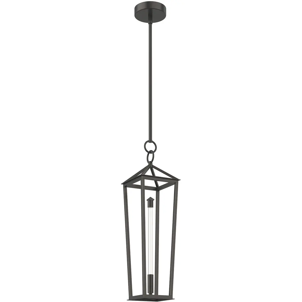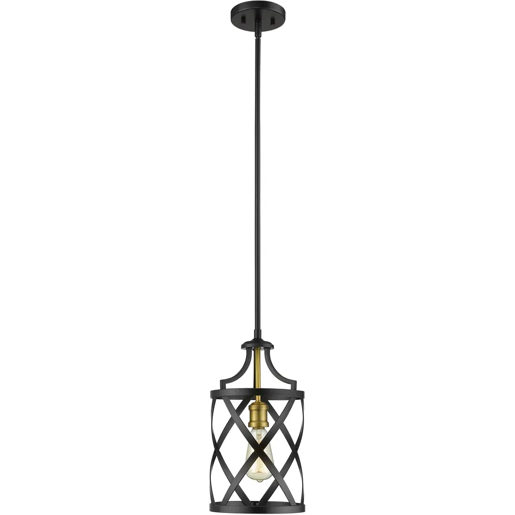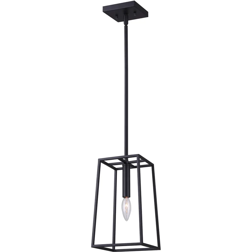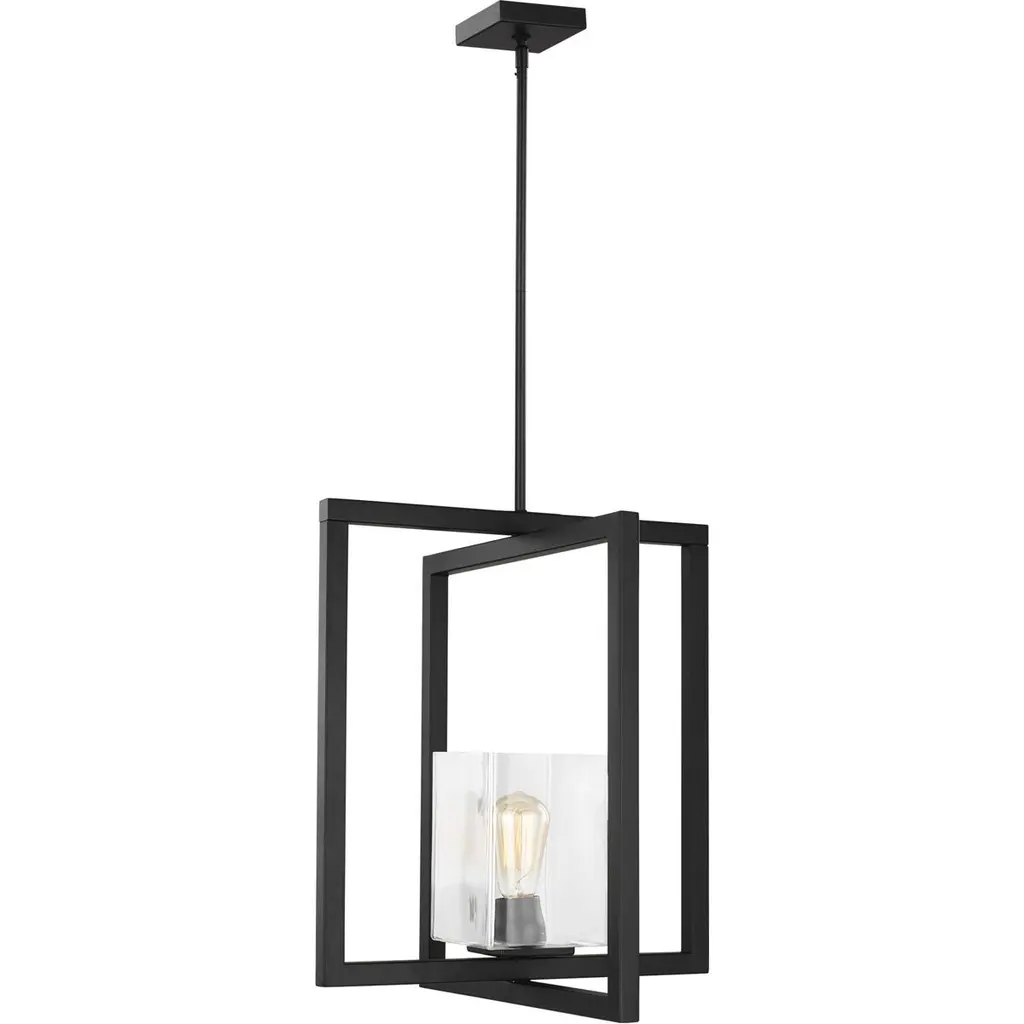 Geometric metal frames finished in Black support panes of clear Seedy glass, provides for a refined restoration look. Add vintage bulbs (not included) to complete the authentic feel of this design. Canopy Included: Yes Canopy Diameter: 5.00 Sloped Ceiling Adaptable: Yes Dimmable: Yes Shade Included: Yes Material: Glass, Finish Color: Black, Width: 7.75", Height: 13.75", Length: 7.75", Hanging Method: Rod and Chain, Lamping Type: Incandescent, Number Of Bulbs: 1, Wattage: 60 Watts, Dimmable: Yes, Moisture Rating: Dry Rated