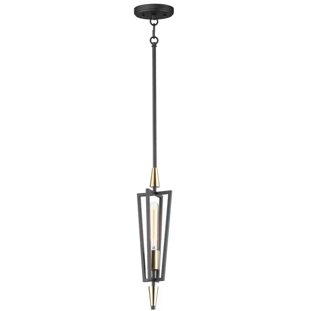 Sharp lines radiate from a pointed pin central body creating geometric angled wings that are sandwiched between matching conical fonts. Finished in a combination Antique Brass and Black, this collection is both contemporary and warm. Complete this look with vintage T10 light bulbs to for the full effect. Canopy Included: Yes Canopy Diameter: 5.00 Sloped Ceiling Adaptable: Yes Dimmable: Yes