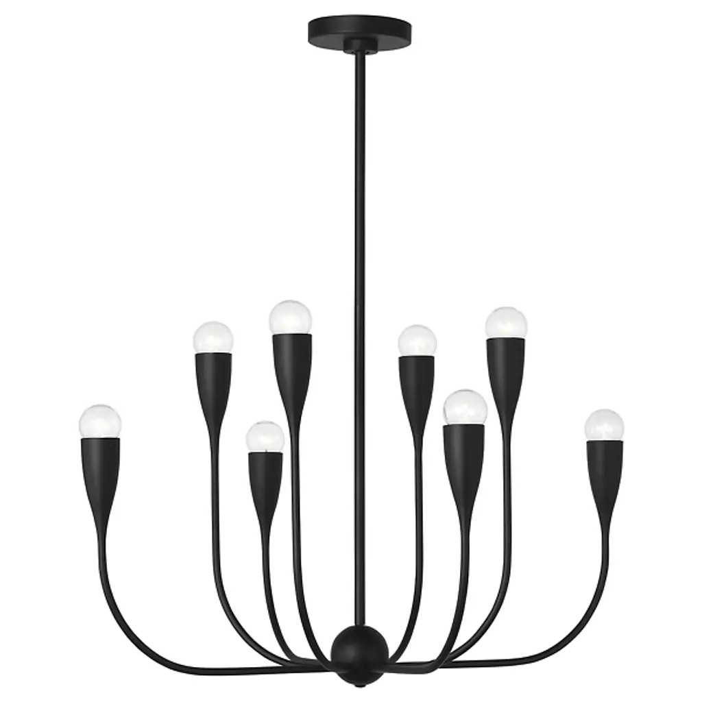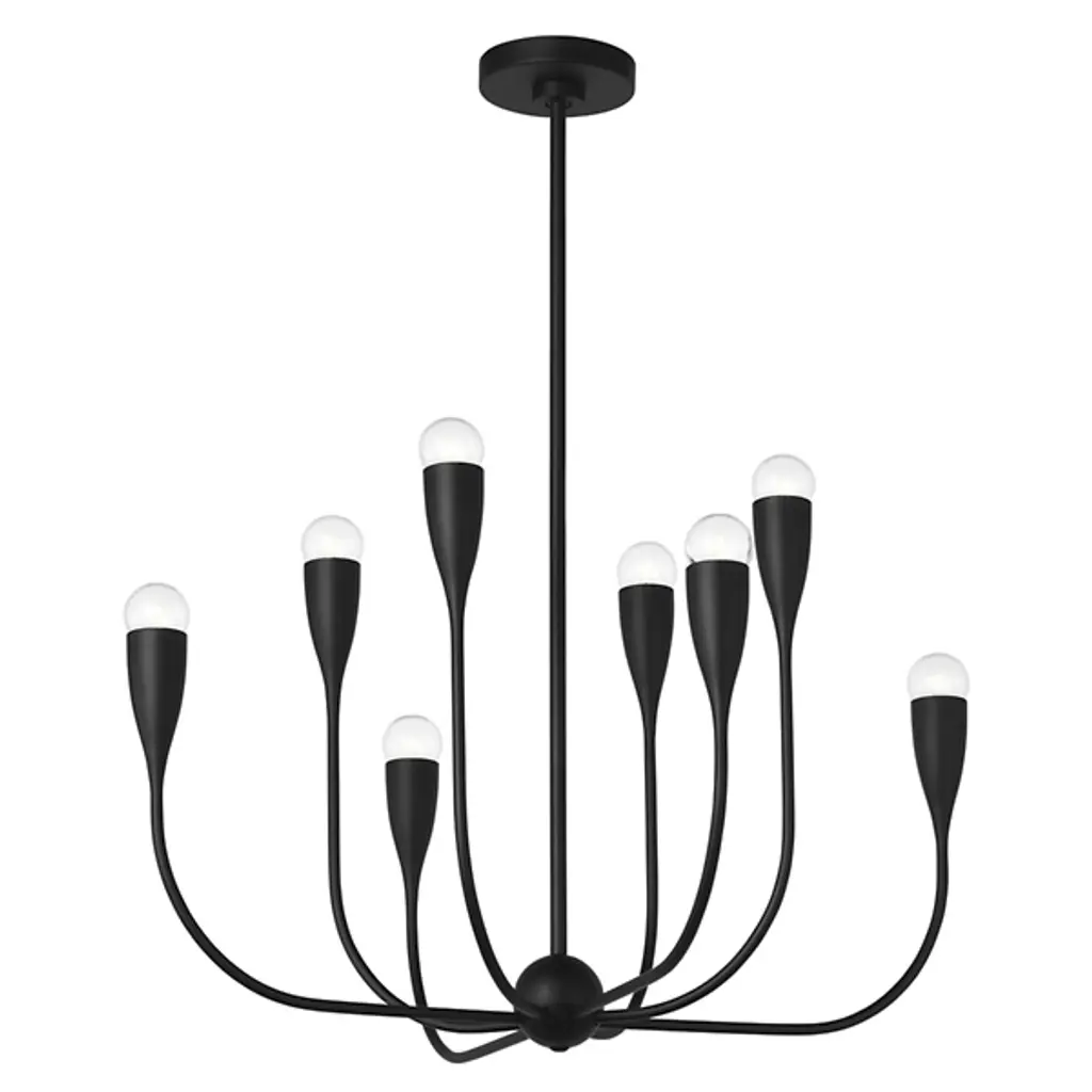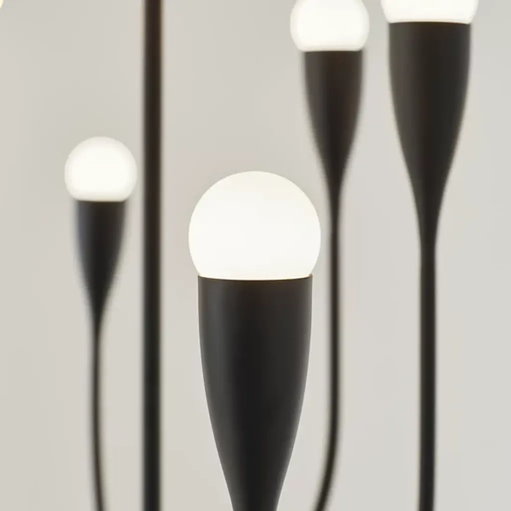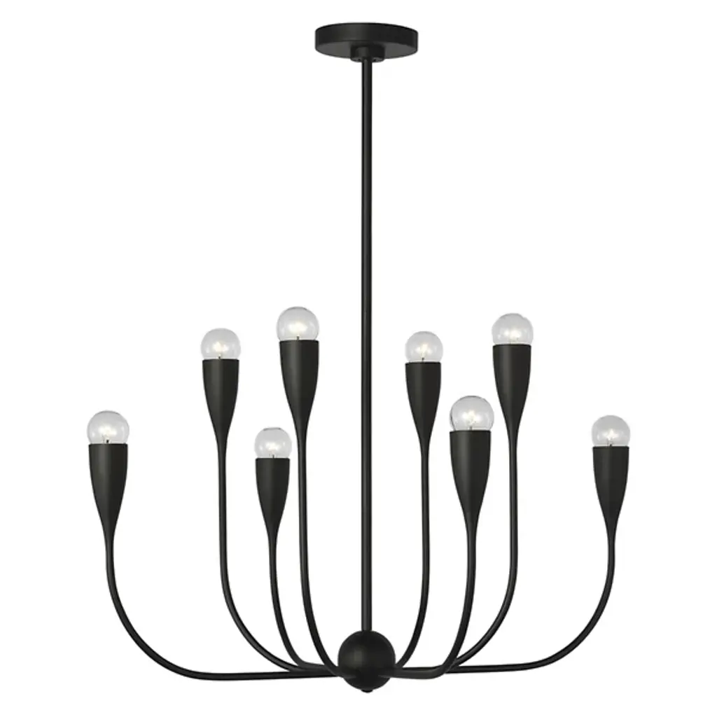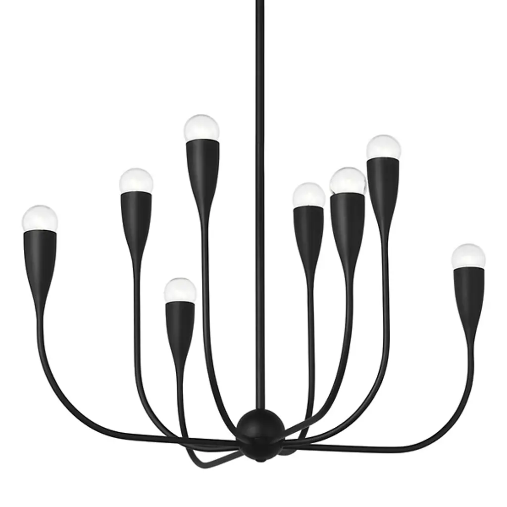 The Maya Pendant from Generation Lighting flows through organic curves where metal shades cradle exposed bulbs within an integrated framework that eliminates traditional glass enclosures. The fluid design creates a modern interpretation of chandelier form through sculptural metal elements that wrap around each light source. This pendant can accommodate sloped ceiling installations, while the exposed bulb arrangement makes lamp selection part of the overall design composition. It provides atmospheric lighting control through dimming compatibility and works well with clear bulbs that complement the metal framework.