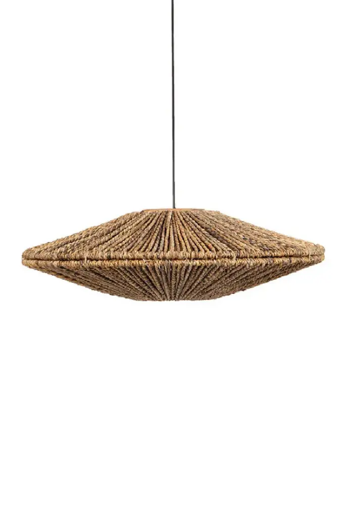 The Maya Pendant from Wildwood blends playful charm with architectural sophistication, making it a standout addition to any space. Its relaxed rattan construction brings natural texture and warmth, creating an inviting, casual vibe. The pendant's design is elevated by spirited fringe accents at the center and tip, introducing a sense of movement and dynamic energy. Perfect for living rooms, dining areas, or entryways, this unique lighting fixture enhances interiors with a whimsical touch and an elegant, artistic presence.