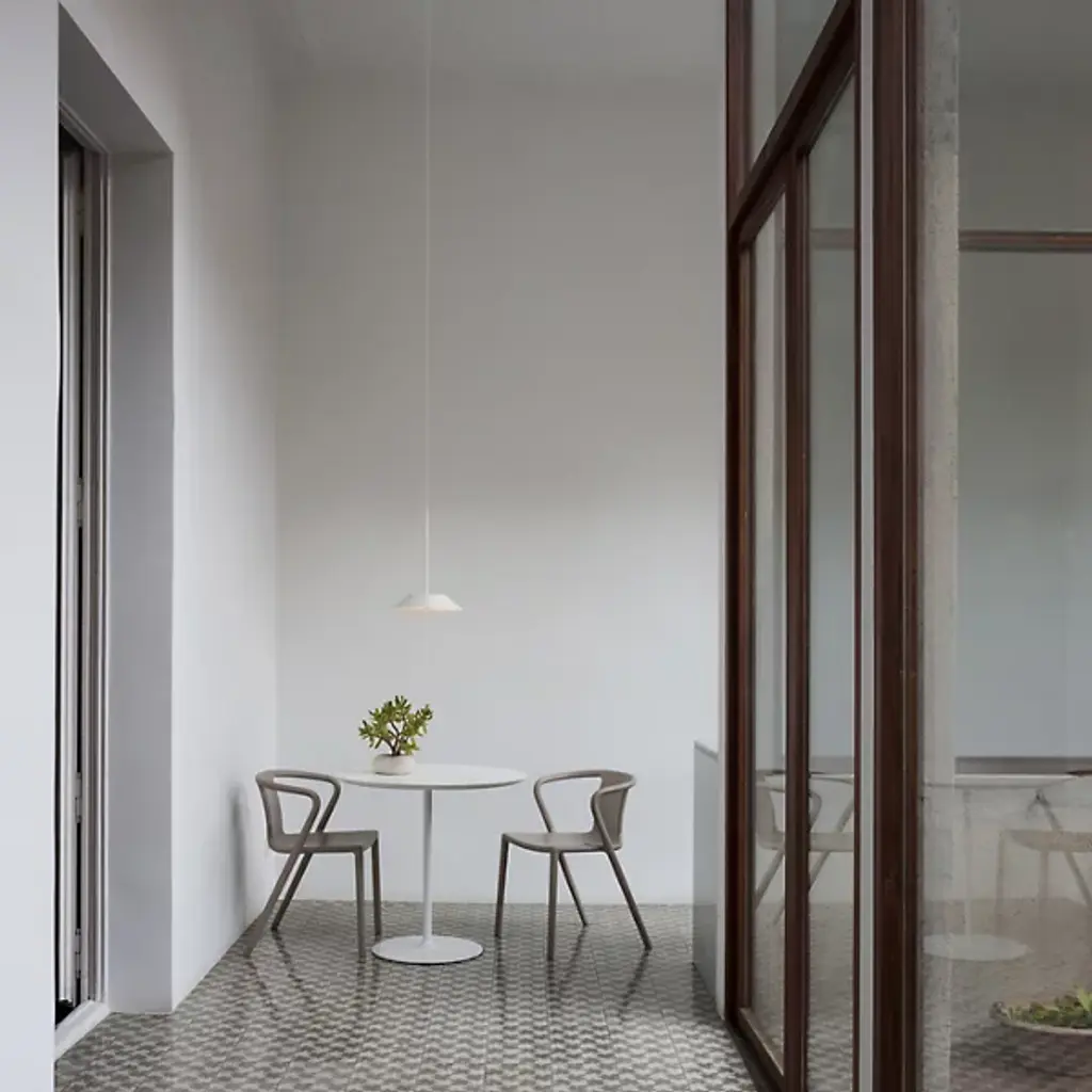 With its saucer-like appearance and sleek metallic finish, the Mayfair 5525 LED Pendant by Vibia makes for a modern, slightly futuristic addition to a variety of rooms. This metallic pendant light is equipped with a thin Steel rod and a circular canopy. Its LED light source generates a soft downwards illumination suitable for use atop kitchen islands, dining room tables, or assembled consecutively in hallways.