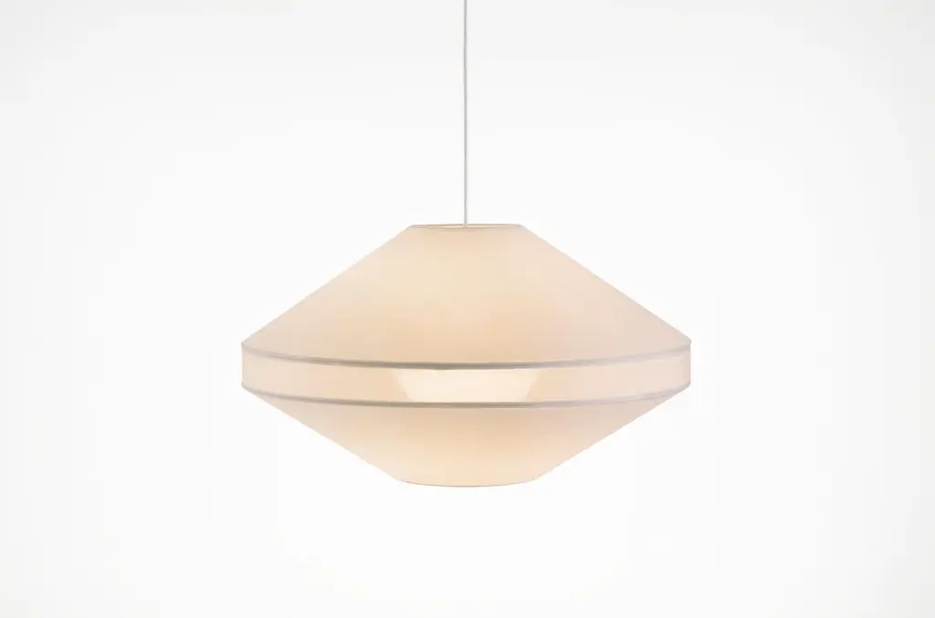 Mayu 02 Pendant Light by Coco FlipDimensions: D 60 x W 60 x H 34 cmMaterials: White mesh fabric on transparent backing. Weight: 2 kgStandard fixtures includedPendants:1 x 80mm Ø ceiling canopy (white)Black also available on request2 metres of white cloth flexlonger drop lengths available on requestMayu 01, 02 & 03 & Floor – Supplied with 1000lumen, 3000K (warm white) dimmableCoco Flip is a Melbourne based furniture and lighting design studio, run by us, Kate Stokes and Haslett Grounds. We work closely with local craftspeople and manufacturers to create playful products with depth of character.Coco Flip produces character-rich furniture and lighting, in Naarm (Melbourne), for design conscious homes worldwide.Founded in 2010 by Kate Stokes and Haslett Grounds, the studio is inspired by ideas, relationships and materiality. Their designs imbue commercial and residential spaces with personality and warmth. Each distinctive piece is manufactured locally by a collective of skilled craftspeople.Coco Flip is proud to be part of a community that values quality Australian design.All our lamps can be wired according to each country. If sold to the USA it will be wired for the USA for instance.