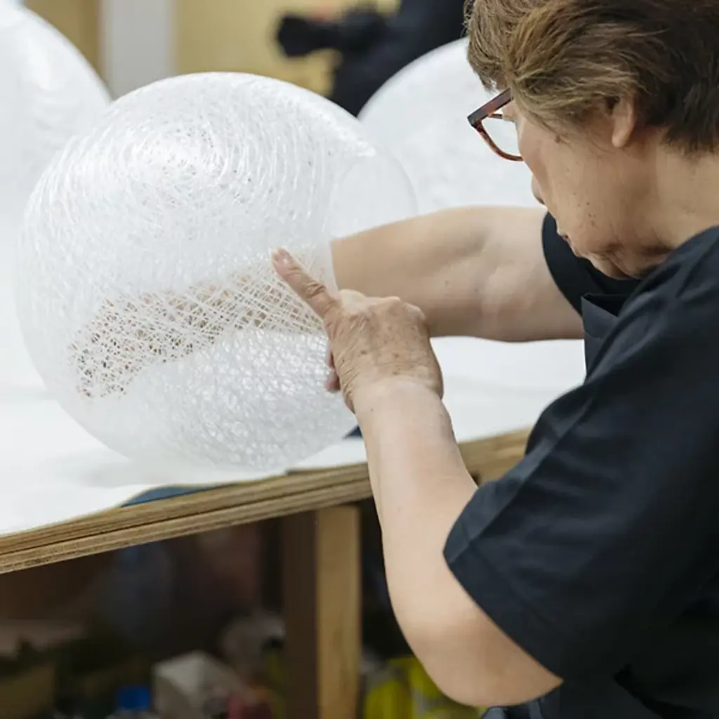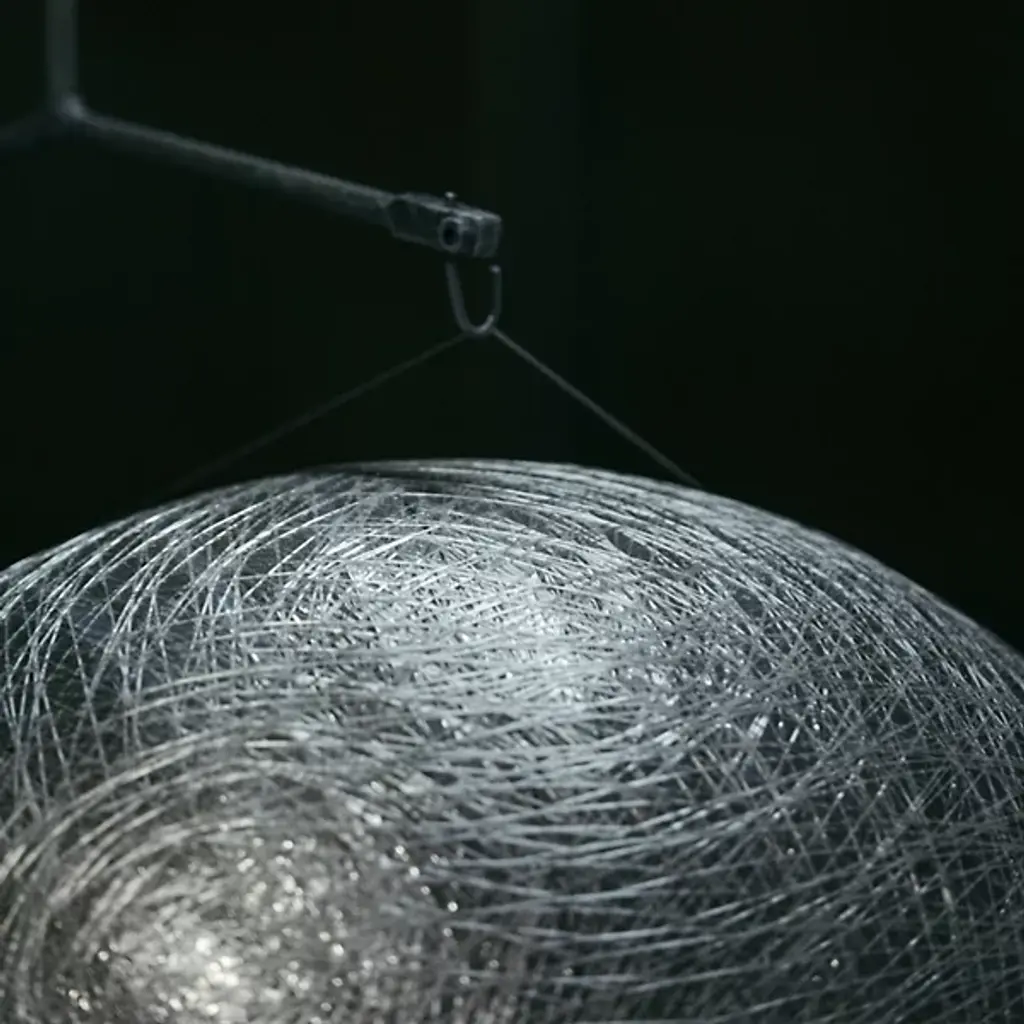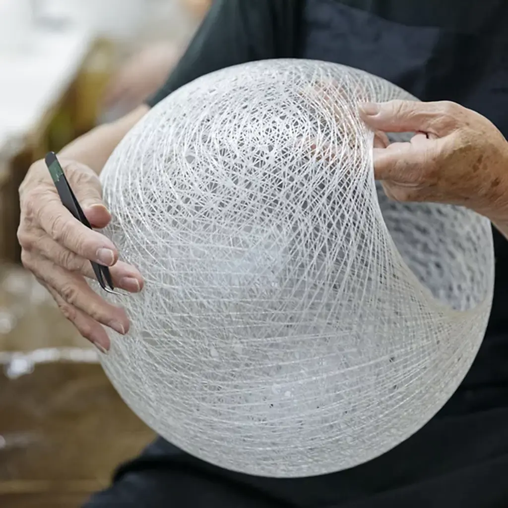 Like a life-size cocoon, the Mayuhana 2 Sphere Pendant by Yamagiwa brings an air of elegance to modern interior living areas while remaining unobtrusive. The Mayuhana 2 Sphere, crafted from durable Fiberglass and Aluminum materials creates the distinctive thread-like shade from which the pendant takes its obvious inspiration from. Uses E26 CFL bulbs or LED 20W to provide warm, inviting light to contemporary living rooms, bedrooms and kitchens.