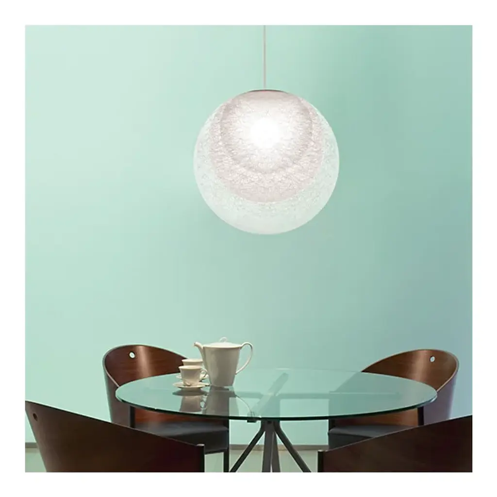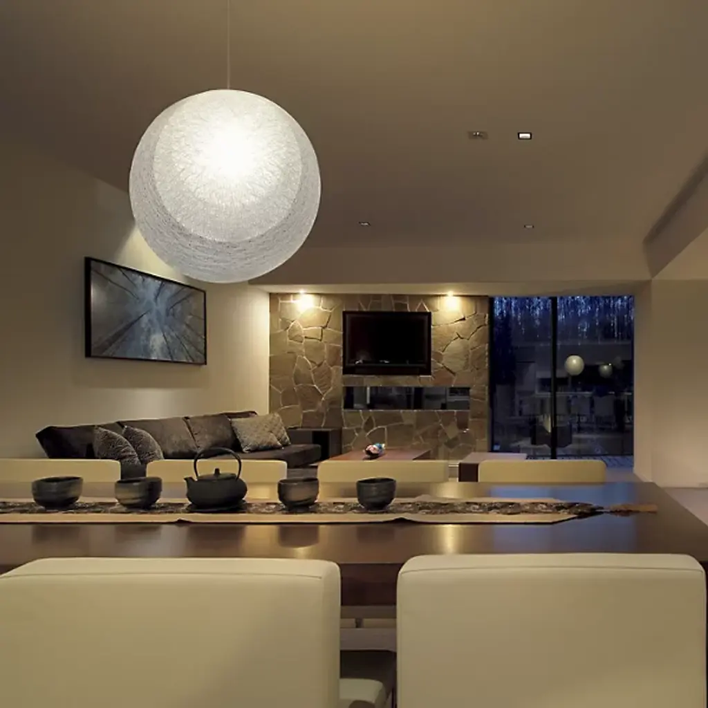 Akin to the precious cocoon from which the butterfly emerges, the Mayuhana Mie Pendant by Yamagiwa features a progressive spun-thread design that allows it to provide warm, inviting light to interior living areas. Fixture uses E27 Globe White Bulb 100W (not included) and is built with Fiberglass and Aluminum materials to ensure longevity no matter what the application. With the profile of the contour lines, ambient light seeps through its shade and bathes the immediate area in warm, inviting light.
